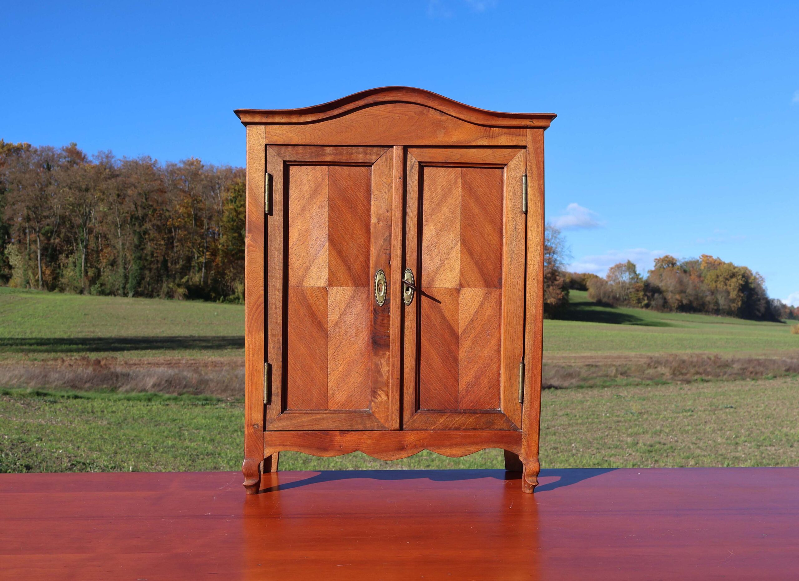 Armoire de poupée / travail de maîtrise. Mignon petit meuble miniature de poupée. C’est une armoire avec un dessus arrondi, forme “en chapeau de gendarme”.