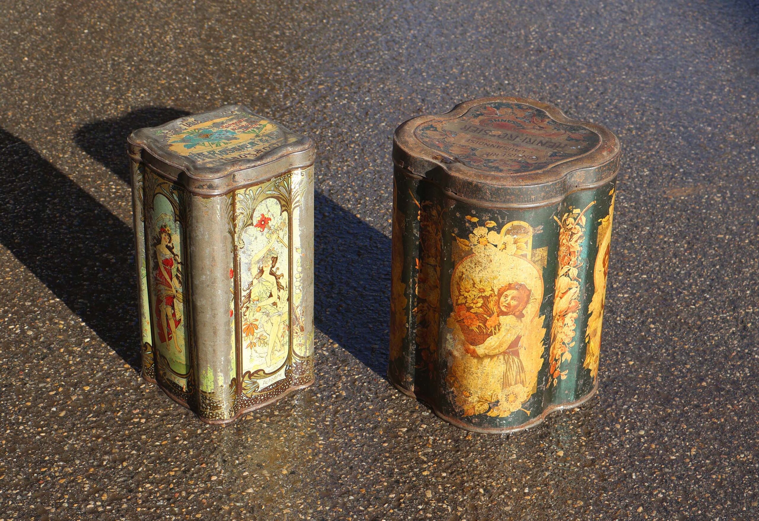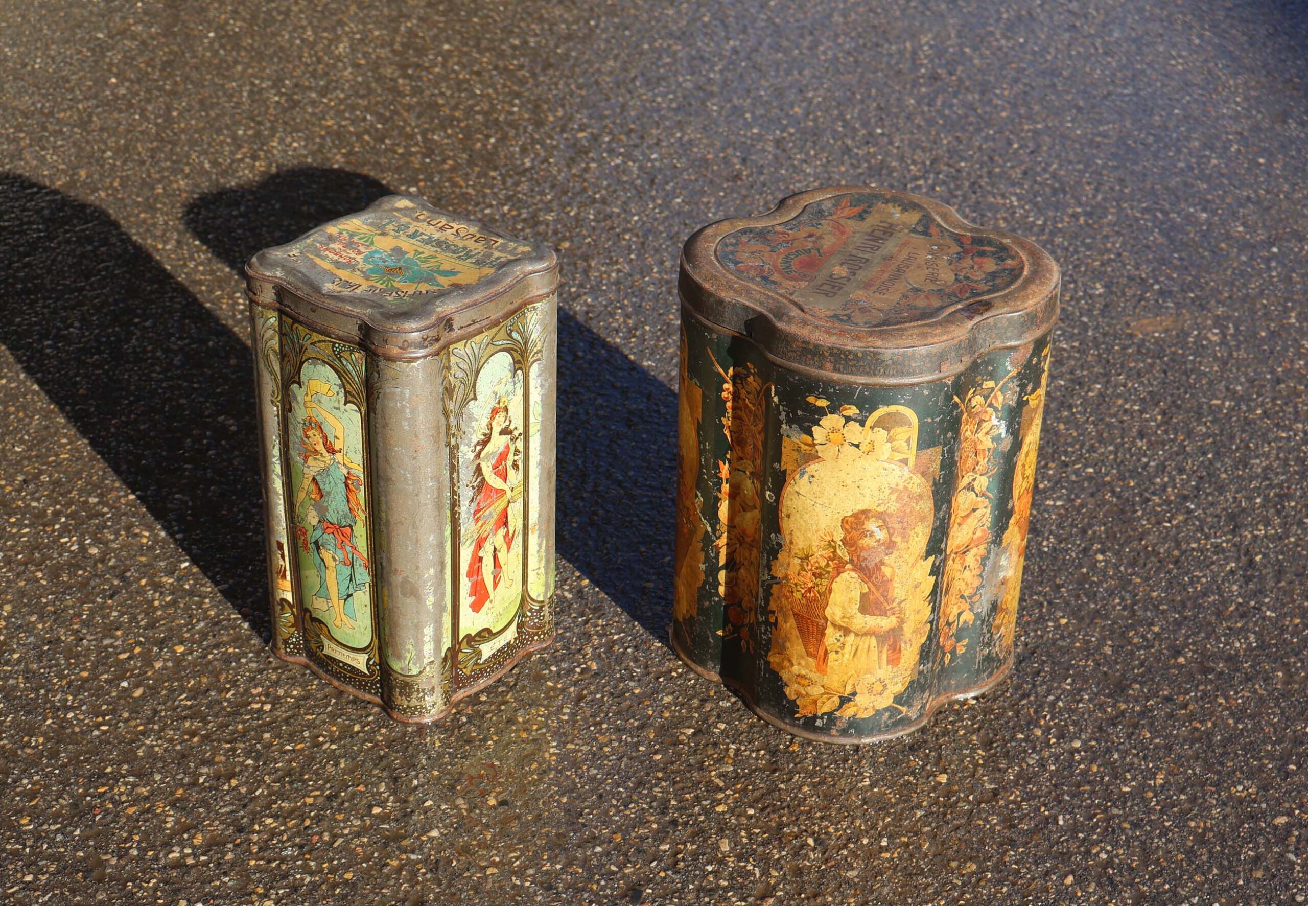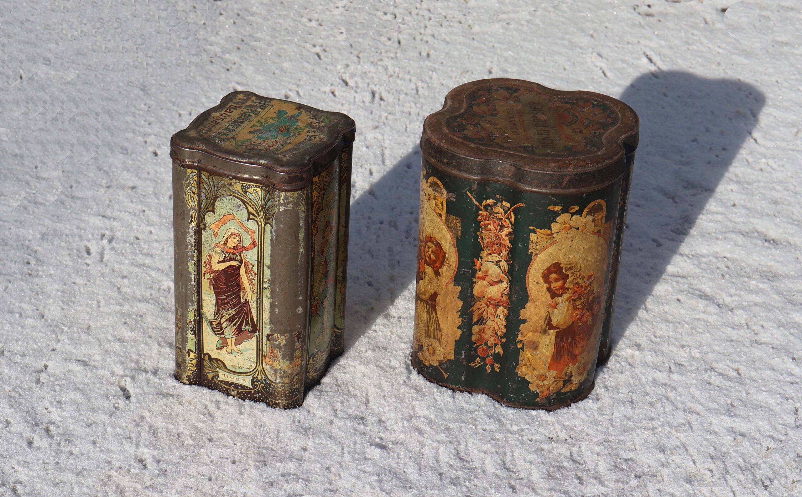 Ces boites métalliques imprimées doivent dater entre 1900 et 1920.