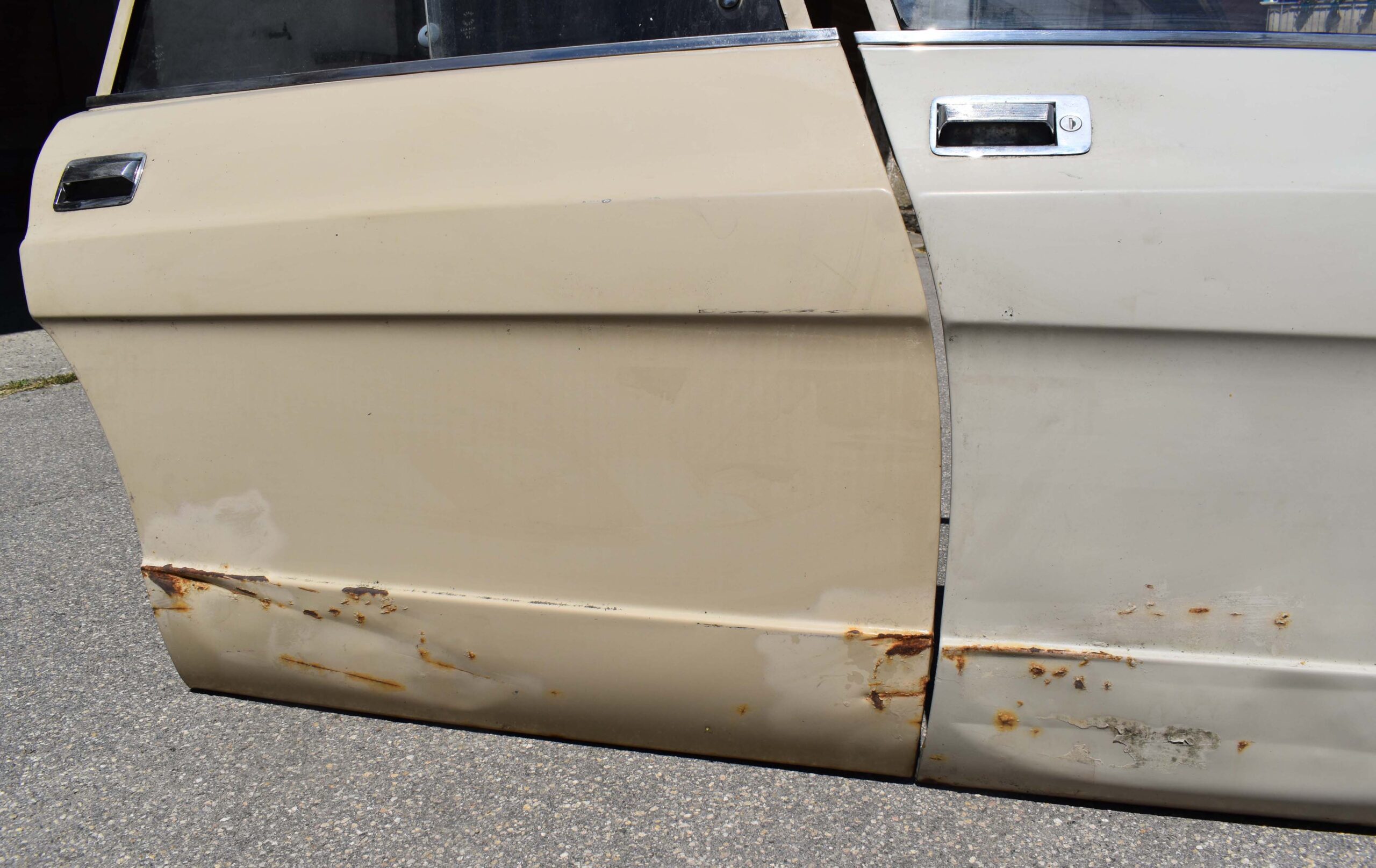 Portières Ami 8 Citroën : Idéal comme déco, ou support pour lettrage ou enseigne publicitaire. Paire de portes de voiture, (côté passager), de marque Citroën, modèle Ami 8 (produit de 1969 à 78).
