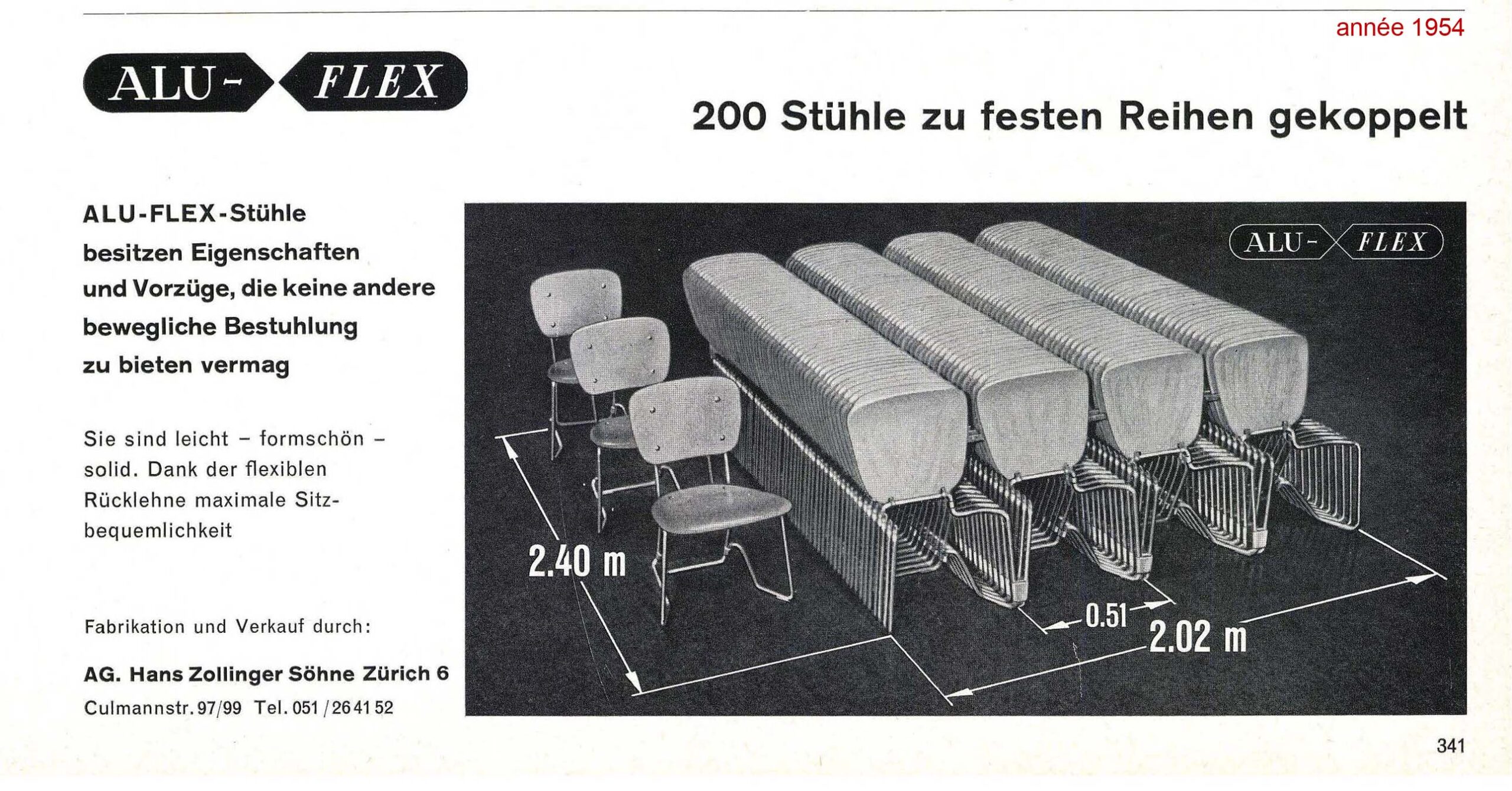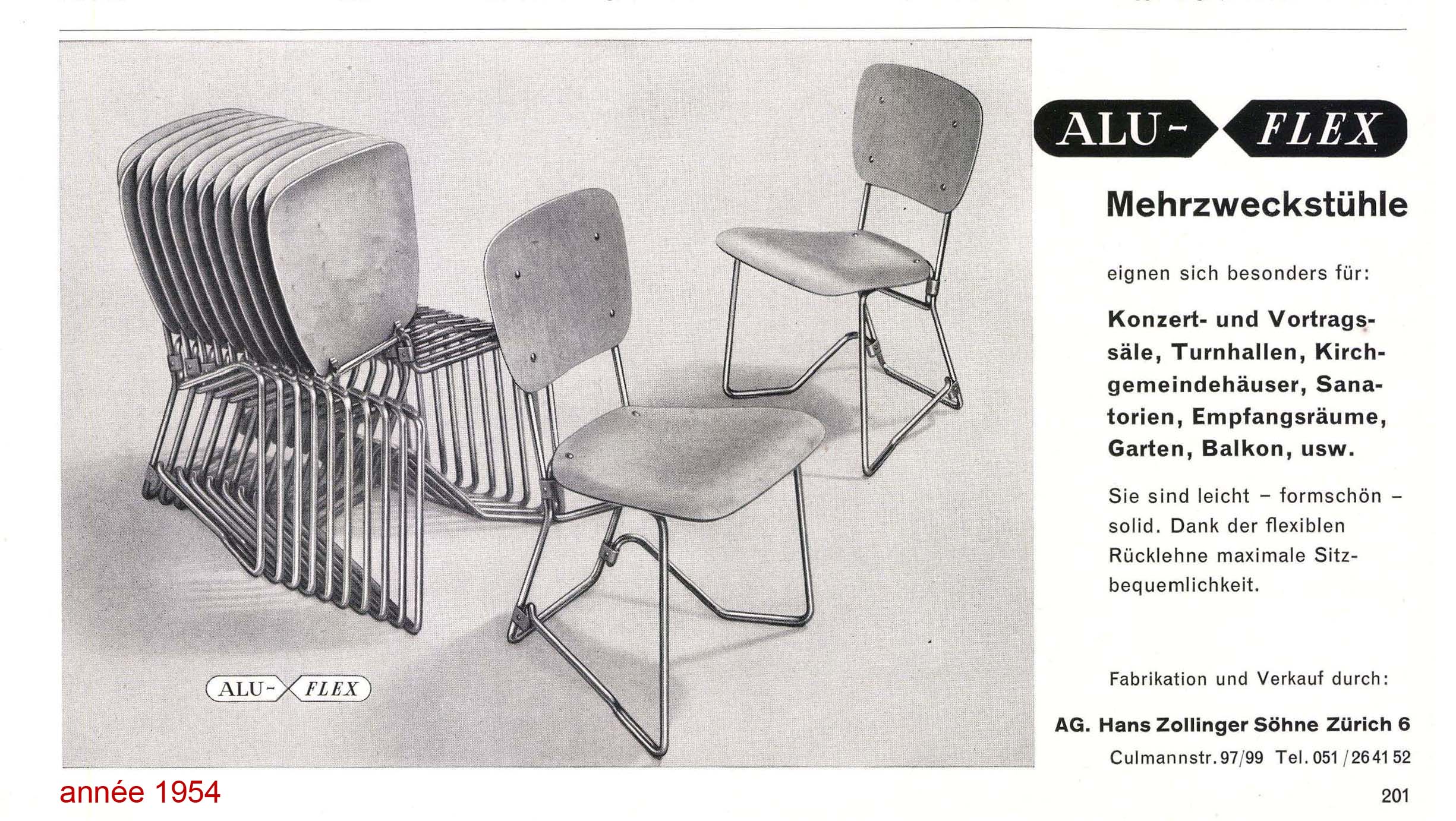 J’ai retrouvé des documents à partir de 1954, que j’ai compilé dans un Pdf. Le design serait daté de 1951, par Armin Wirth. Pour l’entreprise Hans Zollinger Söhne de Zürich. Et la fabrication se fera sur plusieurs décennies.