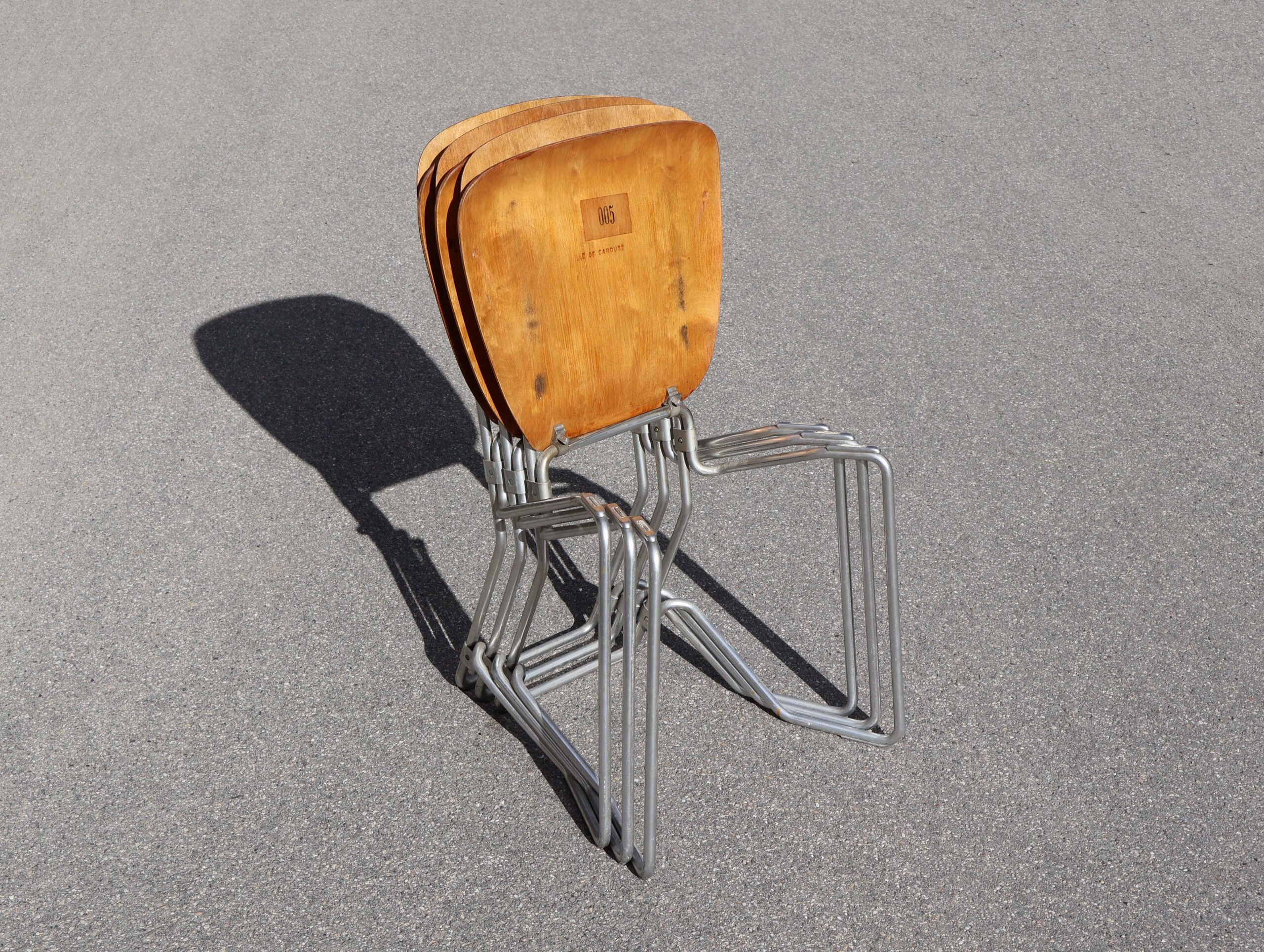 Chaises Alu-Flex Armin Wirth : Ce sont des sièges multifonction, pliants et empilables. Ce qui fait leur particularité, c’est l’ingénieuse conception.