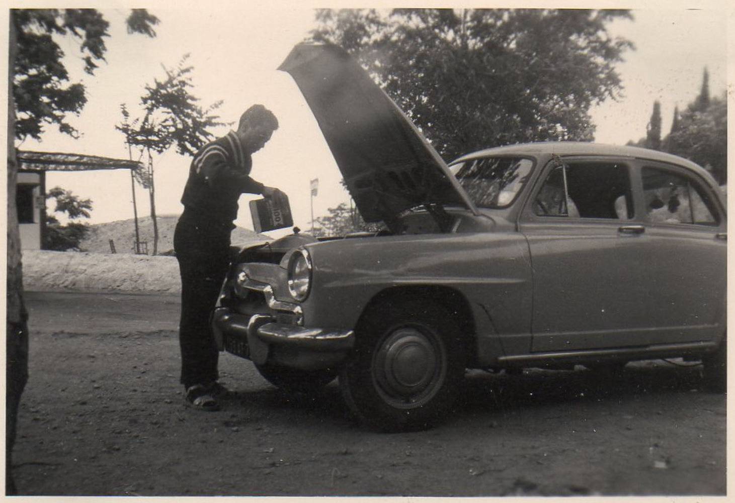 Bidons d’huile moteur de la marque Shell, type X-100. Modèles produits à la fin des années 1950, début 1960. La particularité, c’est la contenance de 2,5 litres.