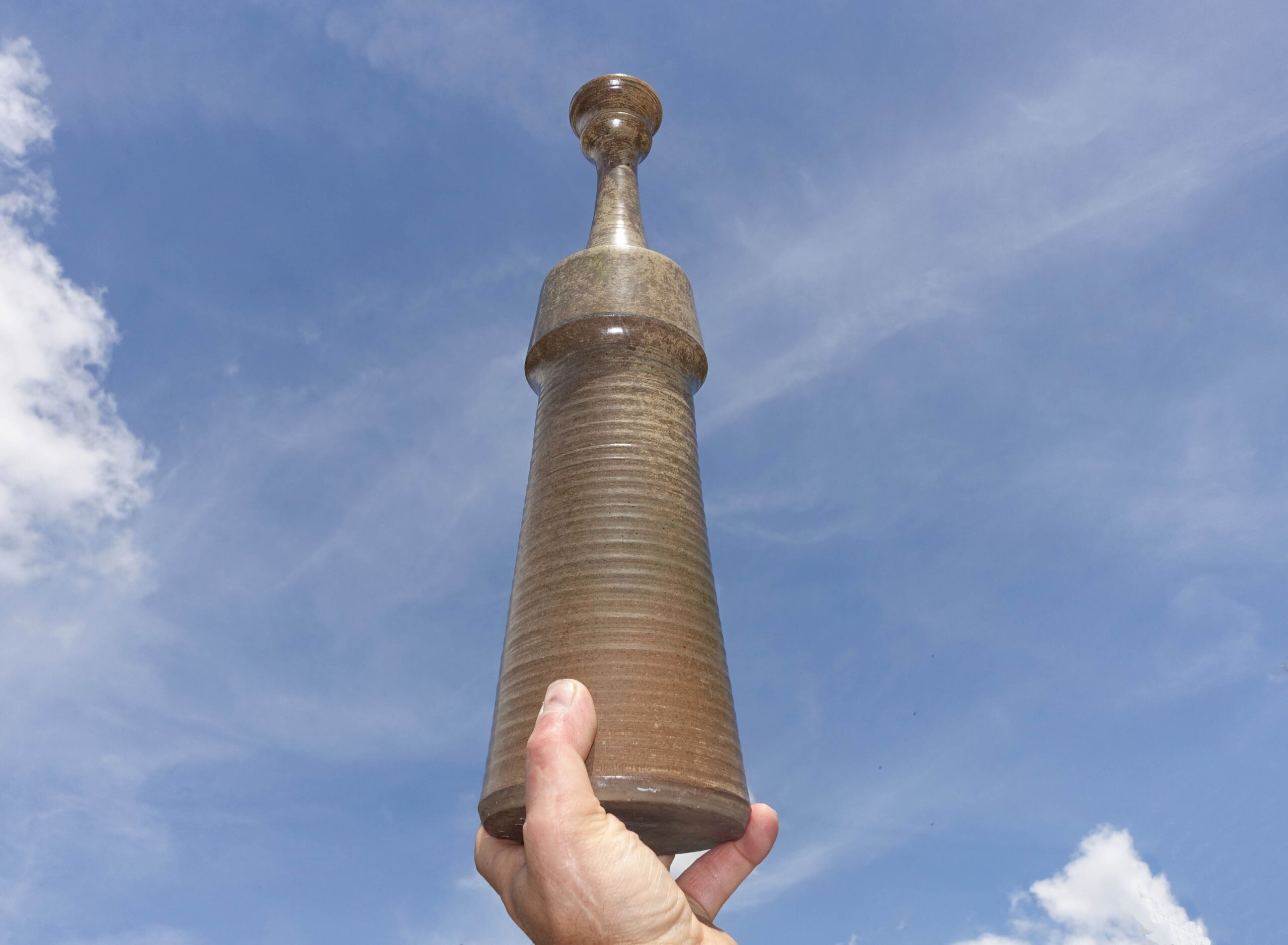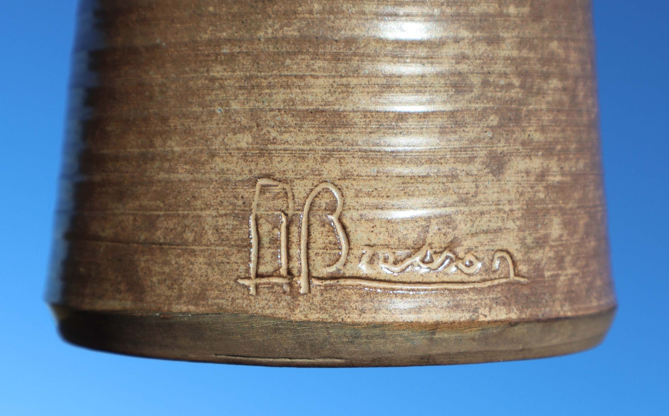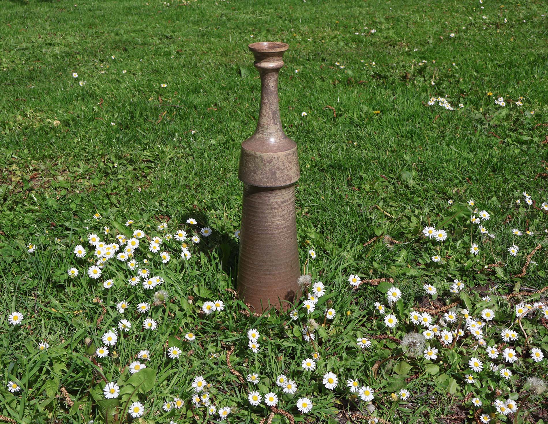 Vase Alain Bresson 1970s. Beau grand vase soliflore, avec un tournage fin, d’une grande maîtrise. Émaillage, avec des teintes brunes-beiges, qui fait penser aux années 1970.