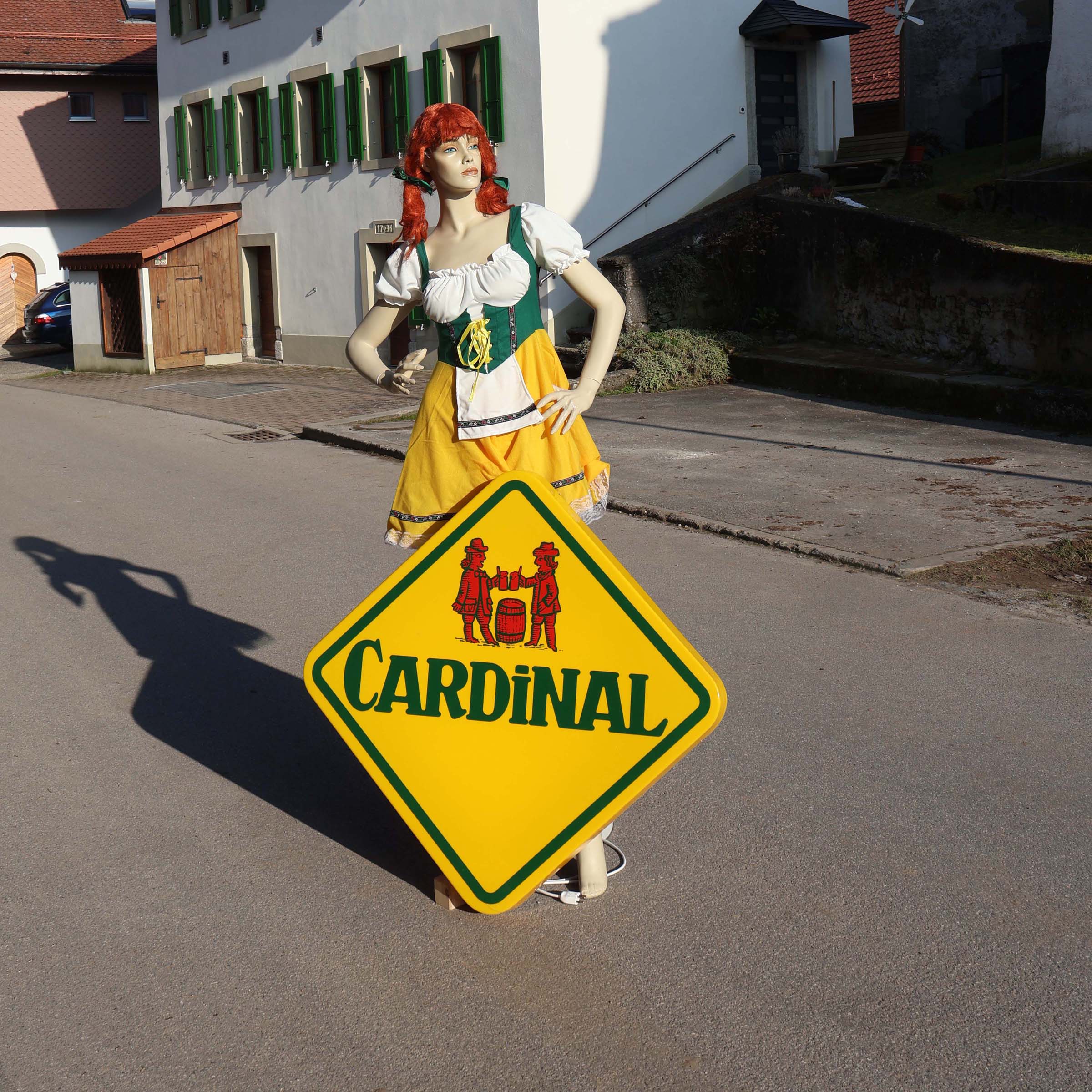 Cardinal enseigne 1970s : Rare enseigne publicitaire lumineuse, de la bière de la brasserie du Cardinal à Fribourg.