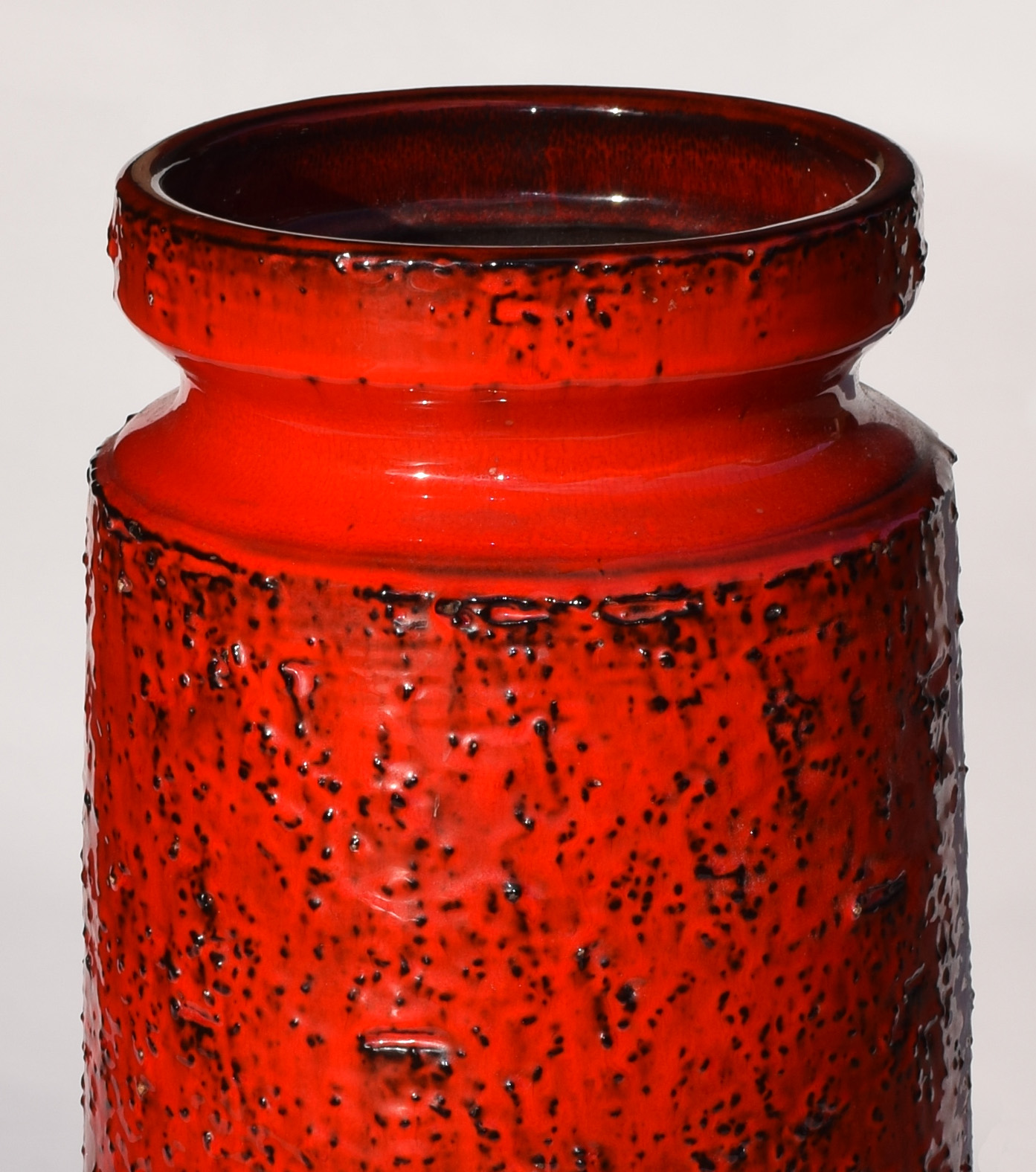 Céramique granuleuse, belle couleur rouge, avec reflets noirs. Diamètre 19 hauteur 40cm. Lourd, de bonne qualité.