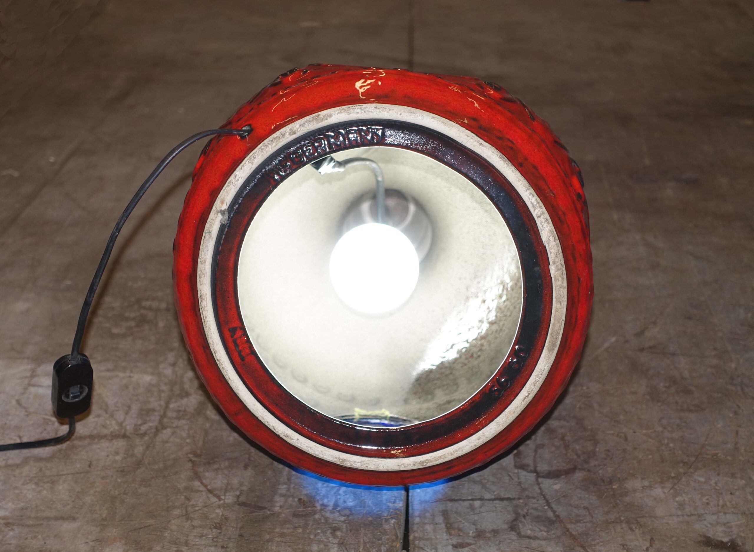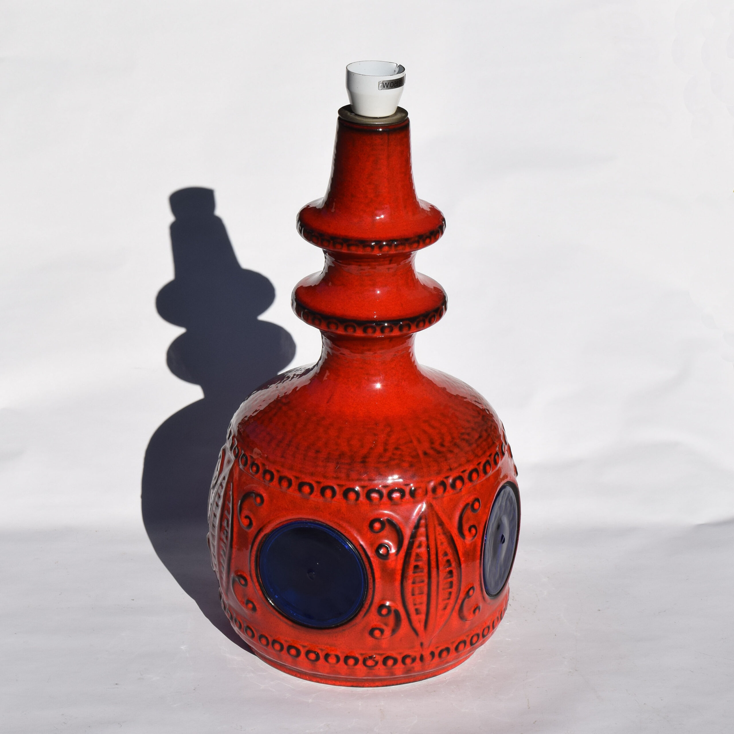 Lampe hippie fat lava Bay Keramik. C’est un luminaire d’ambiance au style kitsch typique des seventies ! Avec un pied en céramique rouge, de fabrication allemande. Siglé du label Bay Keramik, modèle 56-50.