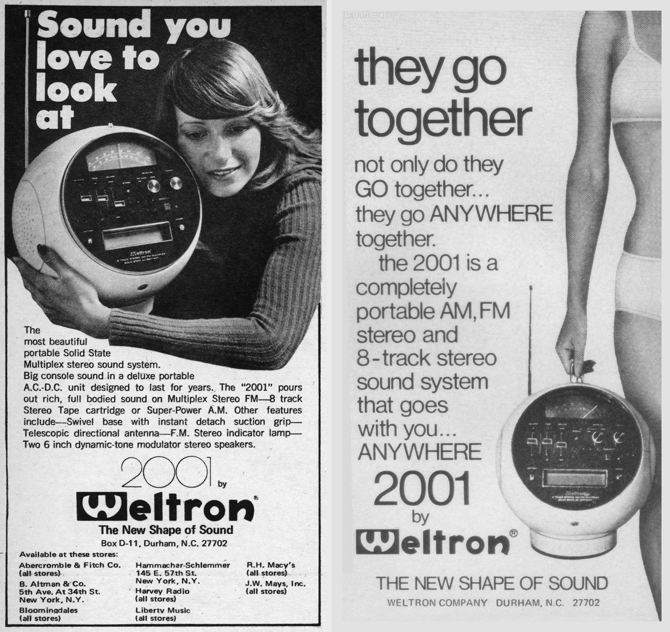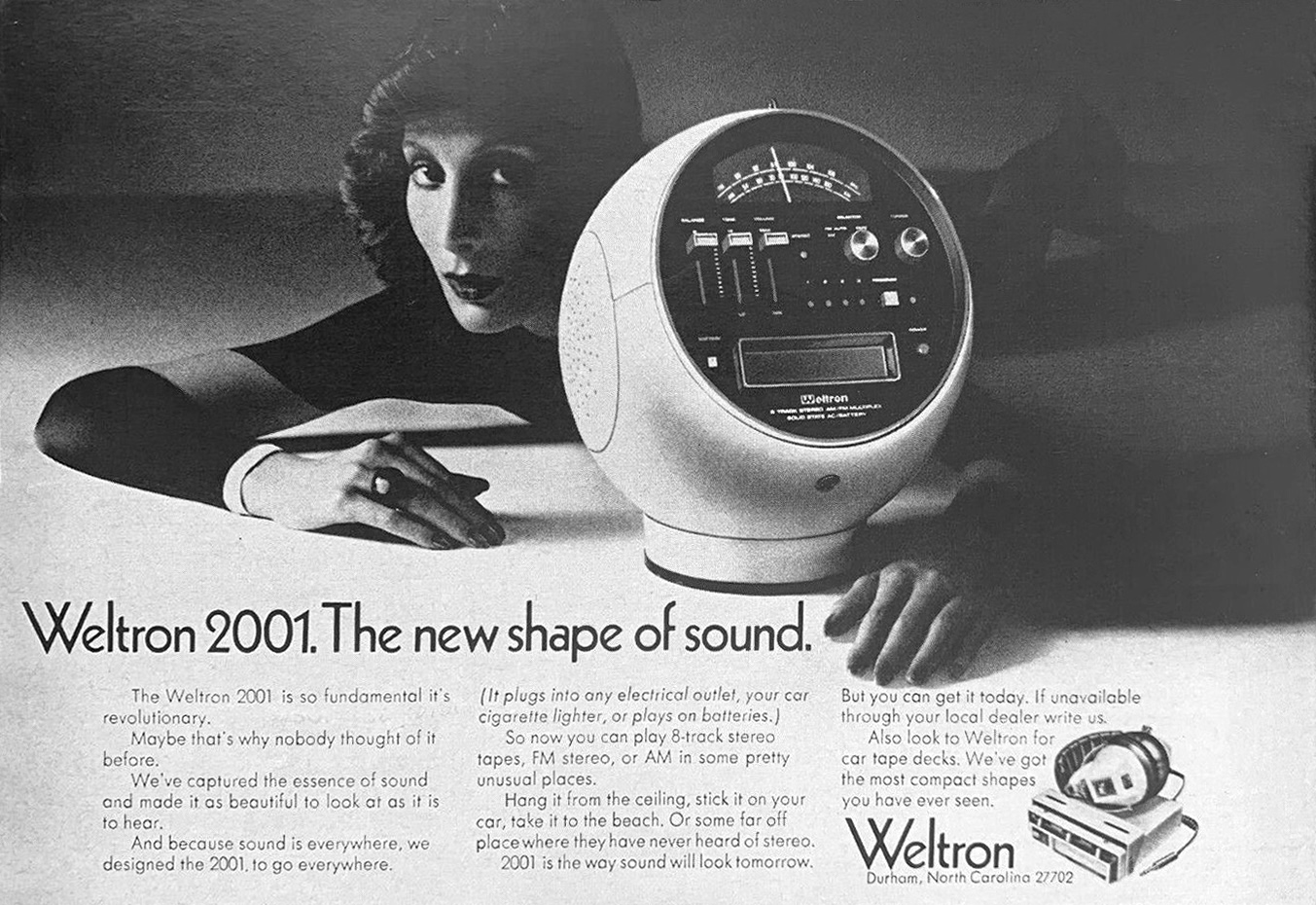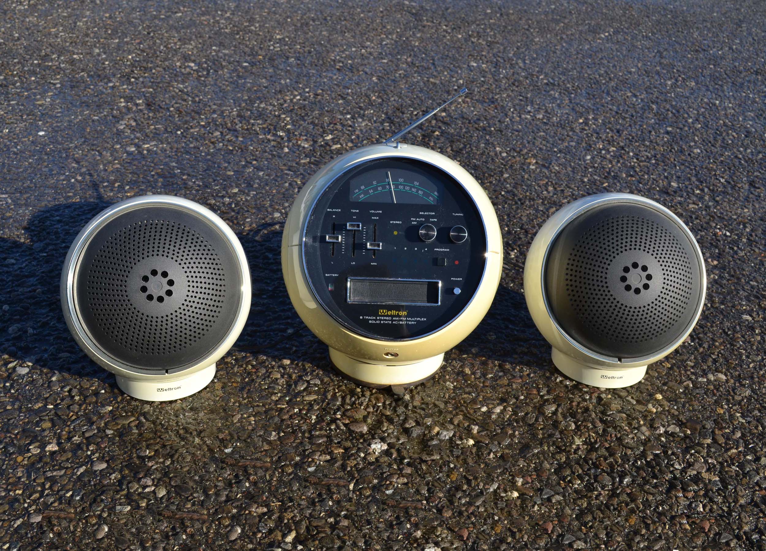 Bel exemple du design des années 1970. Style que l’on a appelé ultérieurement “space age”. La marque Weltron sera emblématique de cette époque, avec son design novateur.