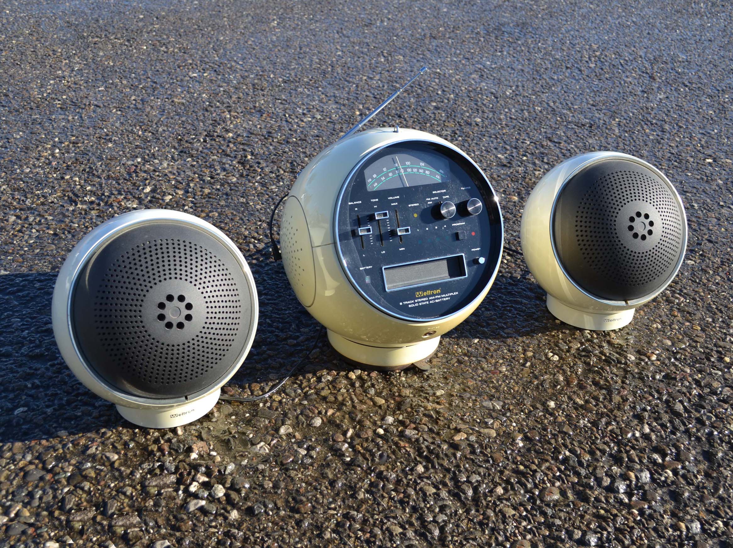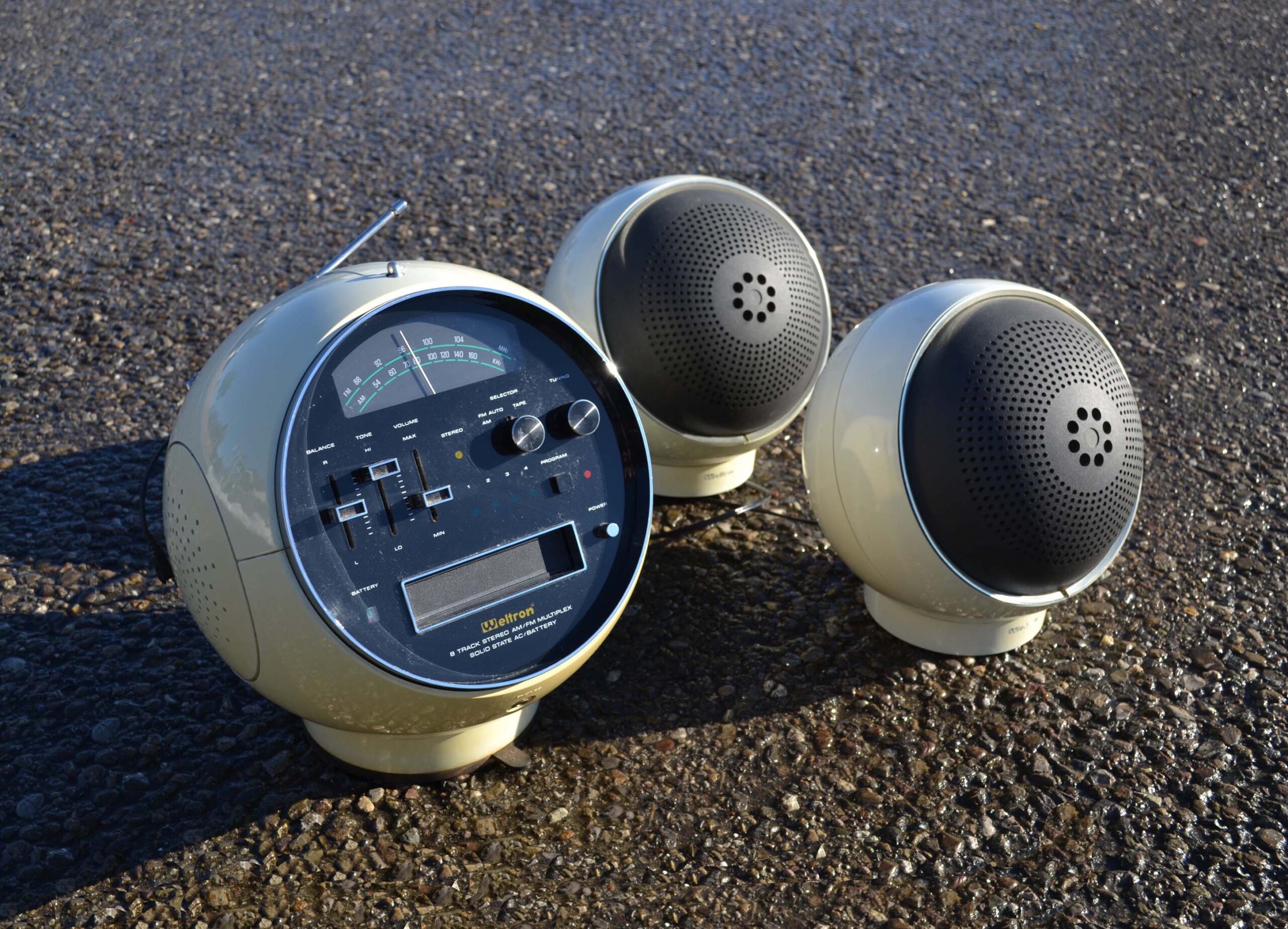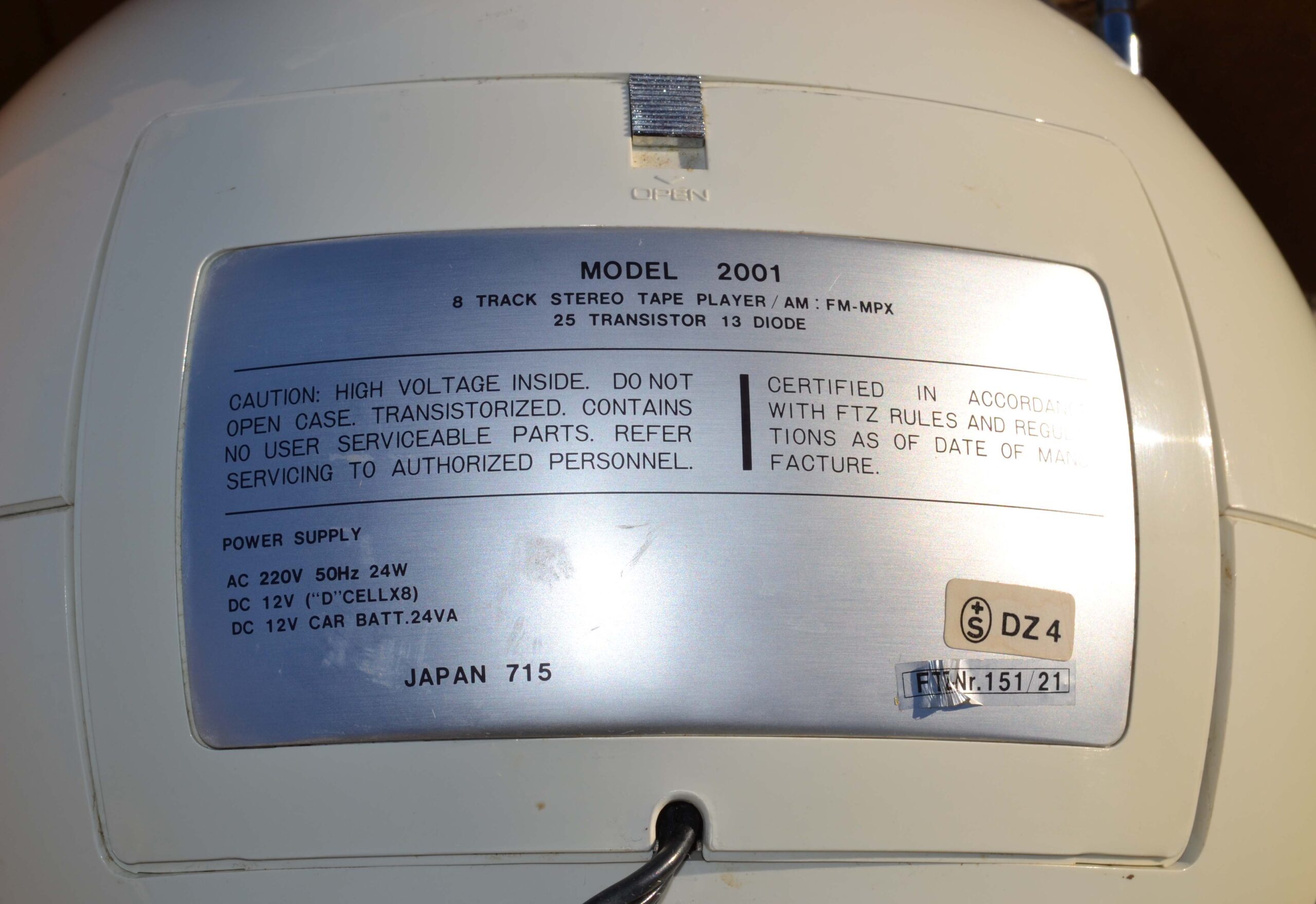 Pour cet ensemble : La radio boule 2001, avec son lecteur à cassettes 8 pistes, (grosses cassettes à bande magnétiques). Ainsi que de 2 enceintes boule / haut-parleurs coordonnés.