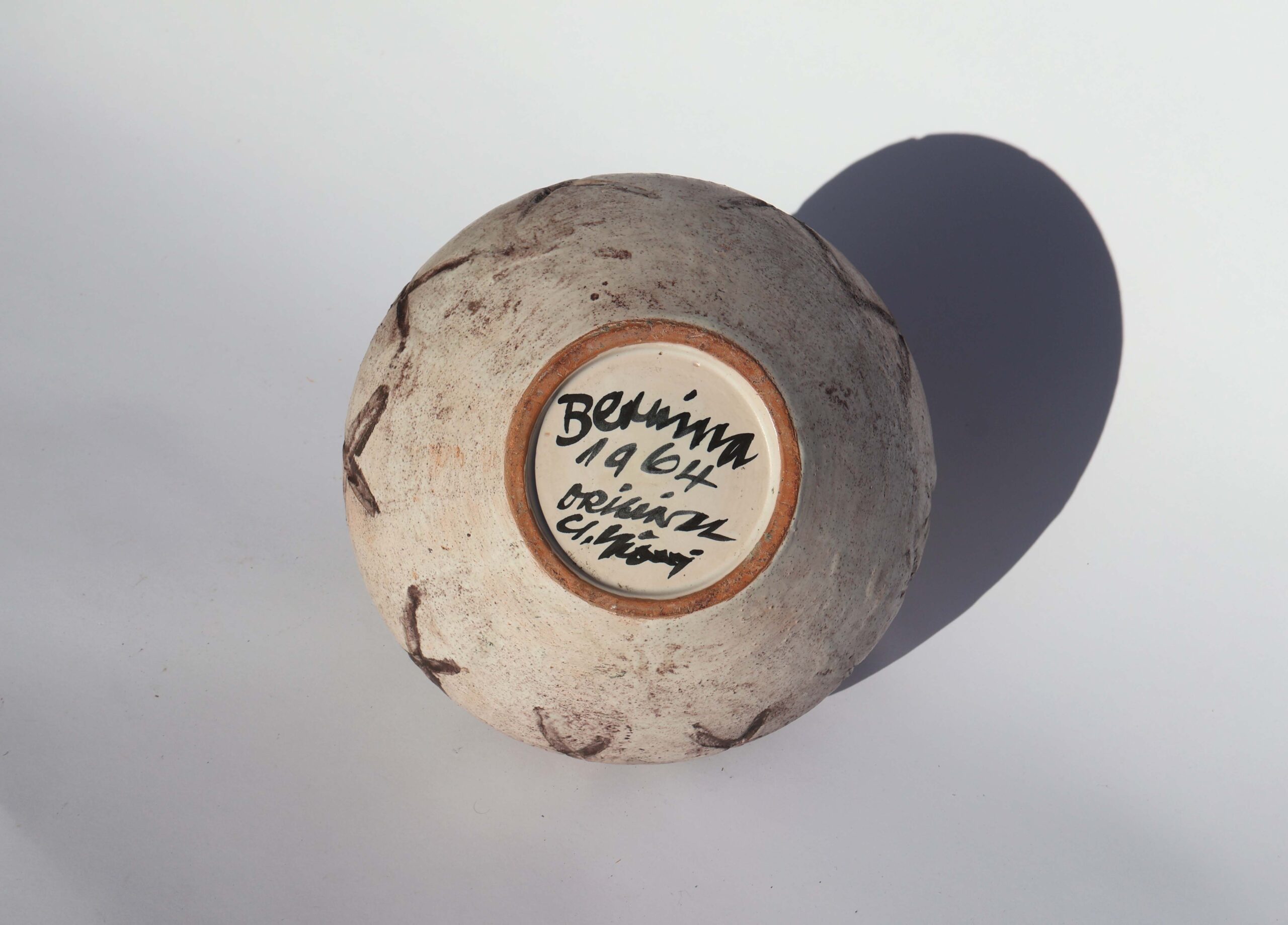 Signé de Gustav Spörri. Celui-ci était directeur artistique dans cette entreprise, de 1949 à 1964. Marquage au dessous : “Bernina 1964 Original G. Spörri”. Peut-être que Bernina est le nom du modèle (?).