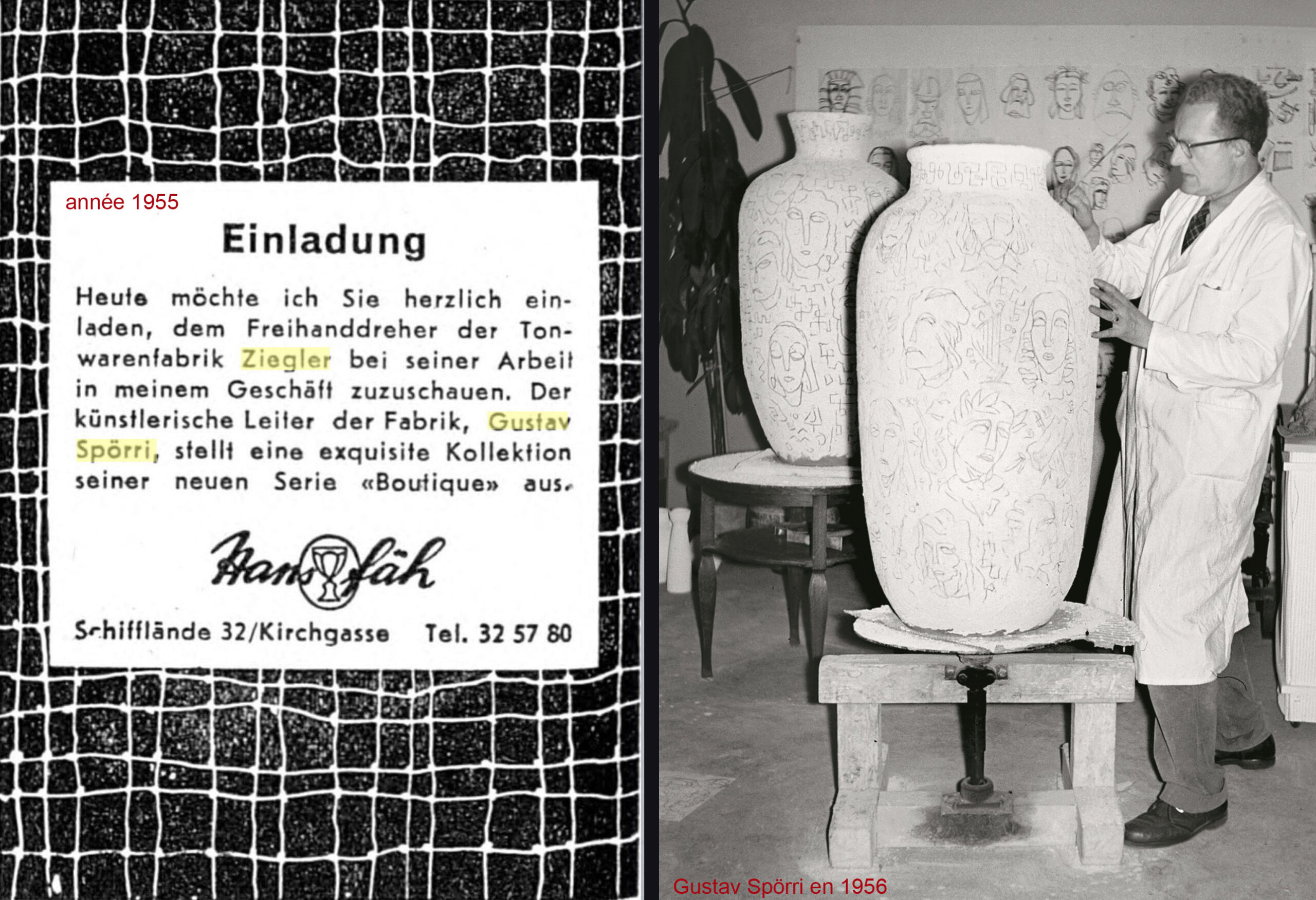 Vase Gustav Spörri 1964. Il s’agit d’un grand vase-cruche en céramique fabriqué chez Ziegler Tonwarenfabrik à Schaffhouse.