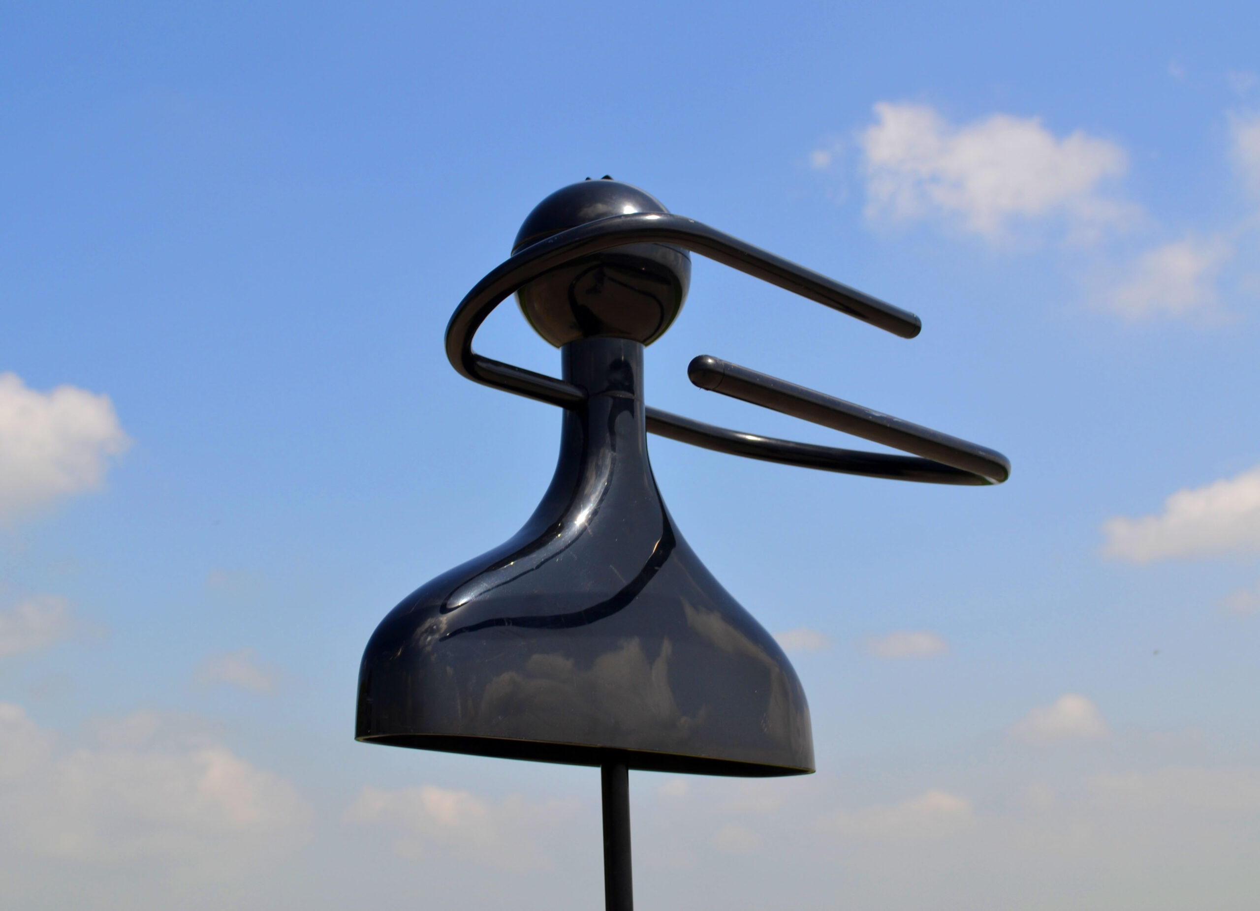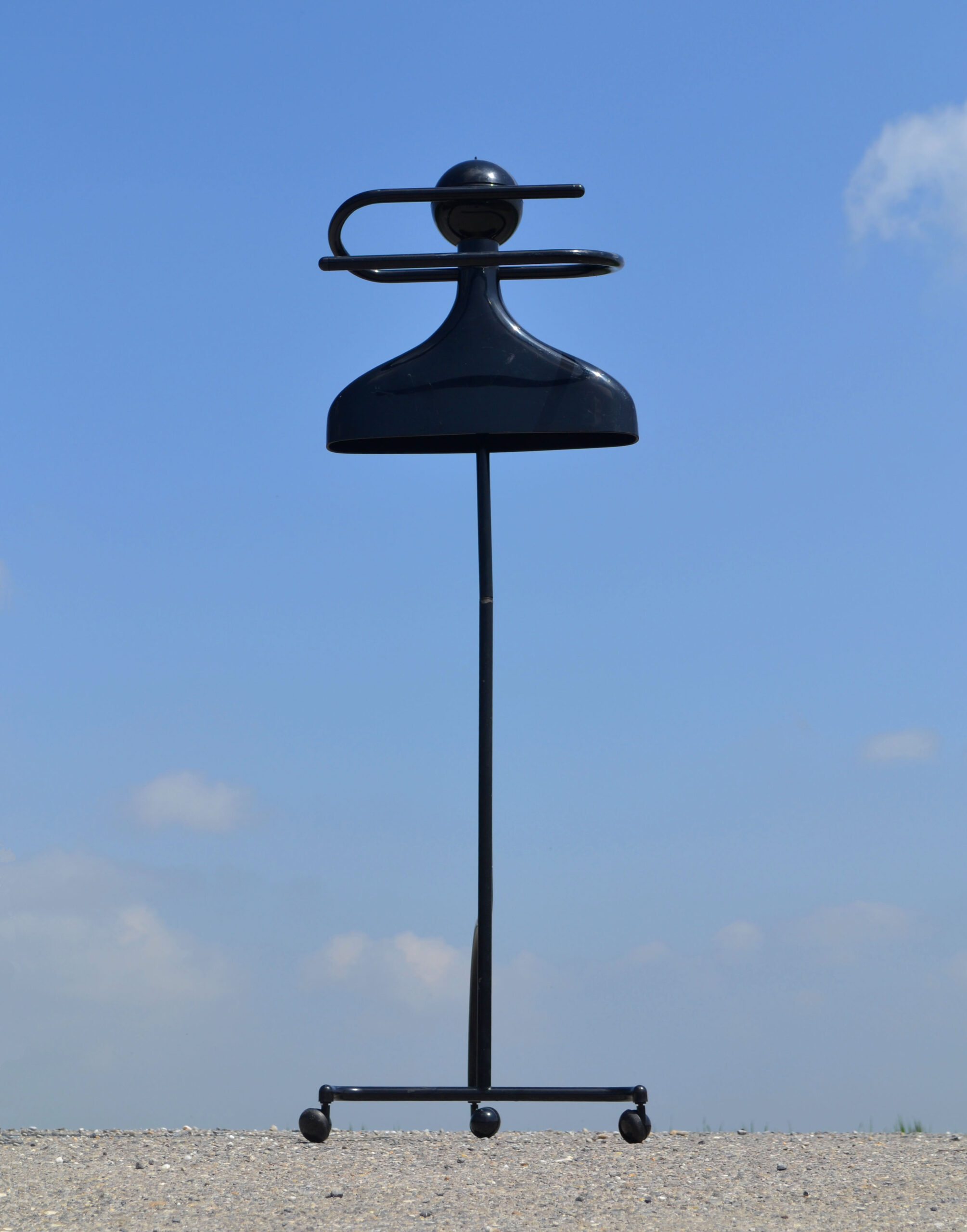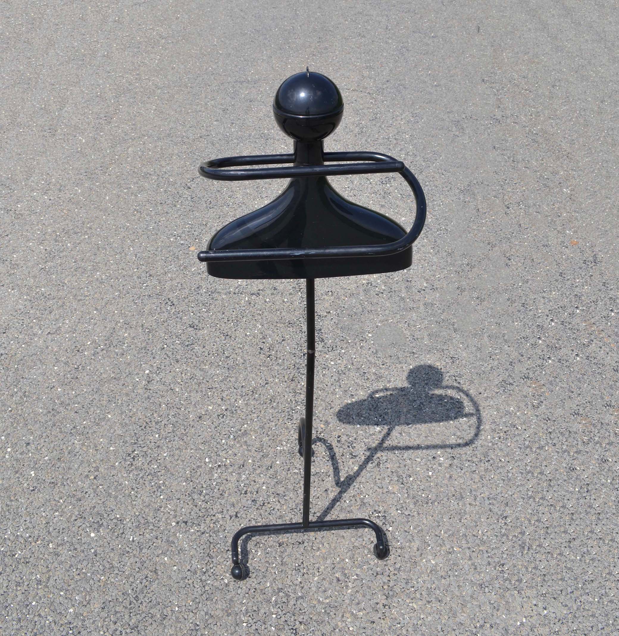 Kartell portabiti 1986 Castelli. C’est un valet porte-habits en plastique noir. Style postmoderne. Design de 1986, par Anna Castelli. Pour le fabricant de meubles italiens Kartell. Avec la tête qui fait office de compartiment range-accessoires, (car couvercle).