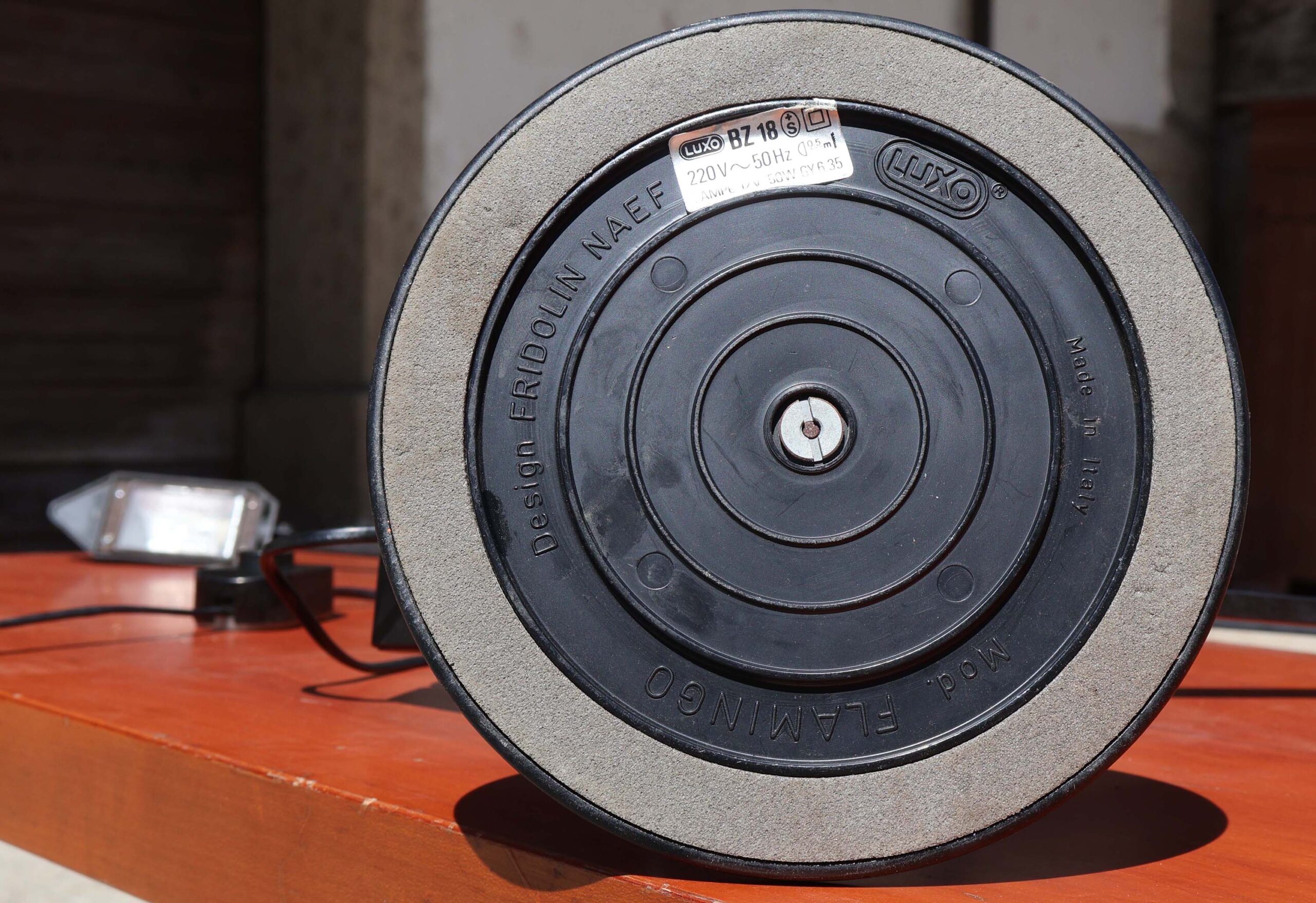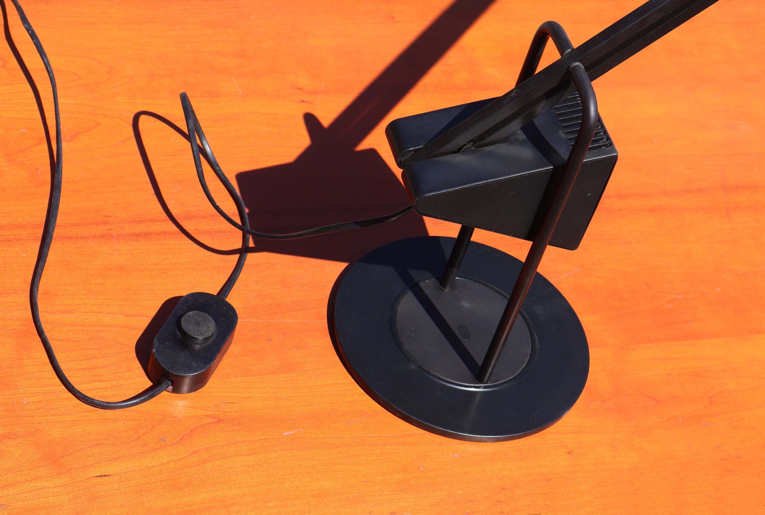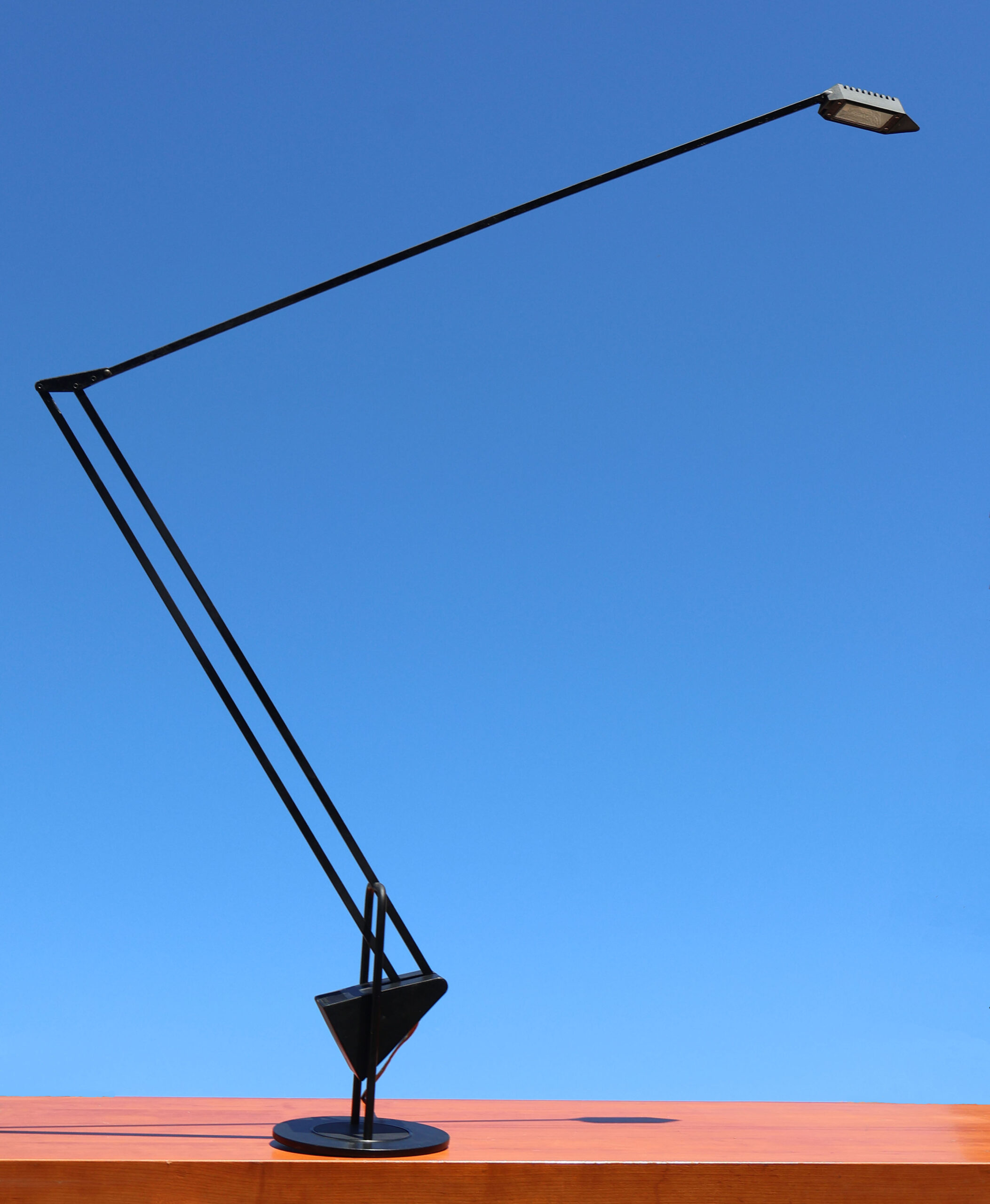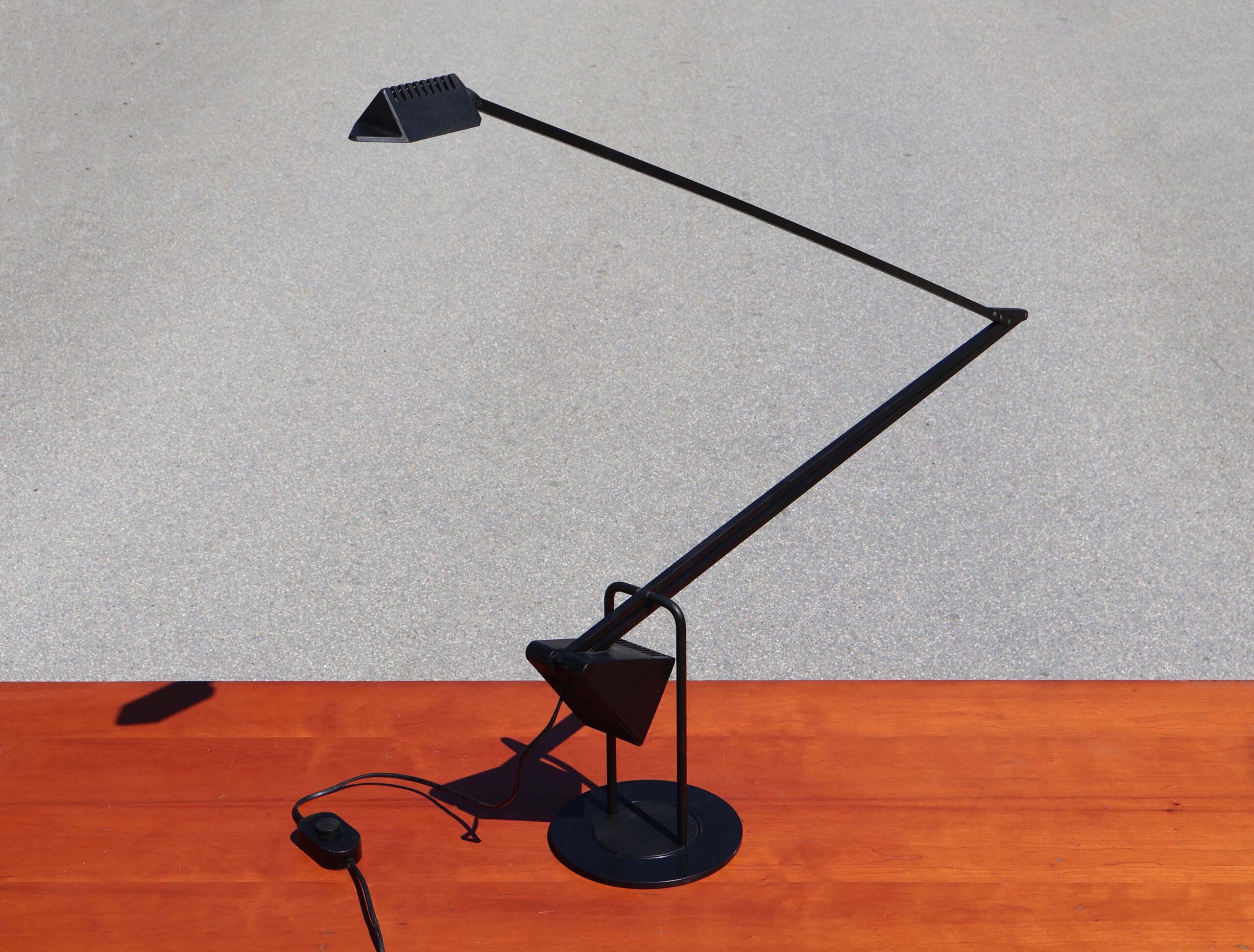 Du fabricant Italien de luminaires “Luxo”, design signé de Fridolin Naef. J’ignore la date de cette création, mais look typique début 80’s. Mêlant un design high-tech de la fin des années 1970, avec des formes géométriques basiques et minimalistes, style que l’on pourrait qualifier de “postmoderne”.