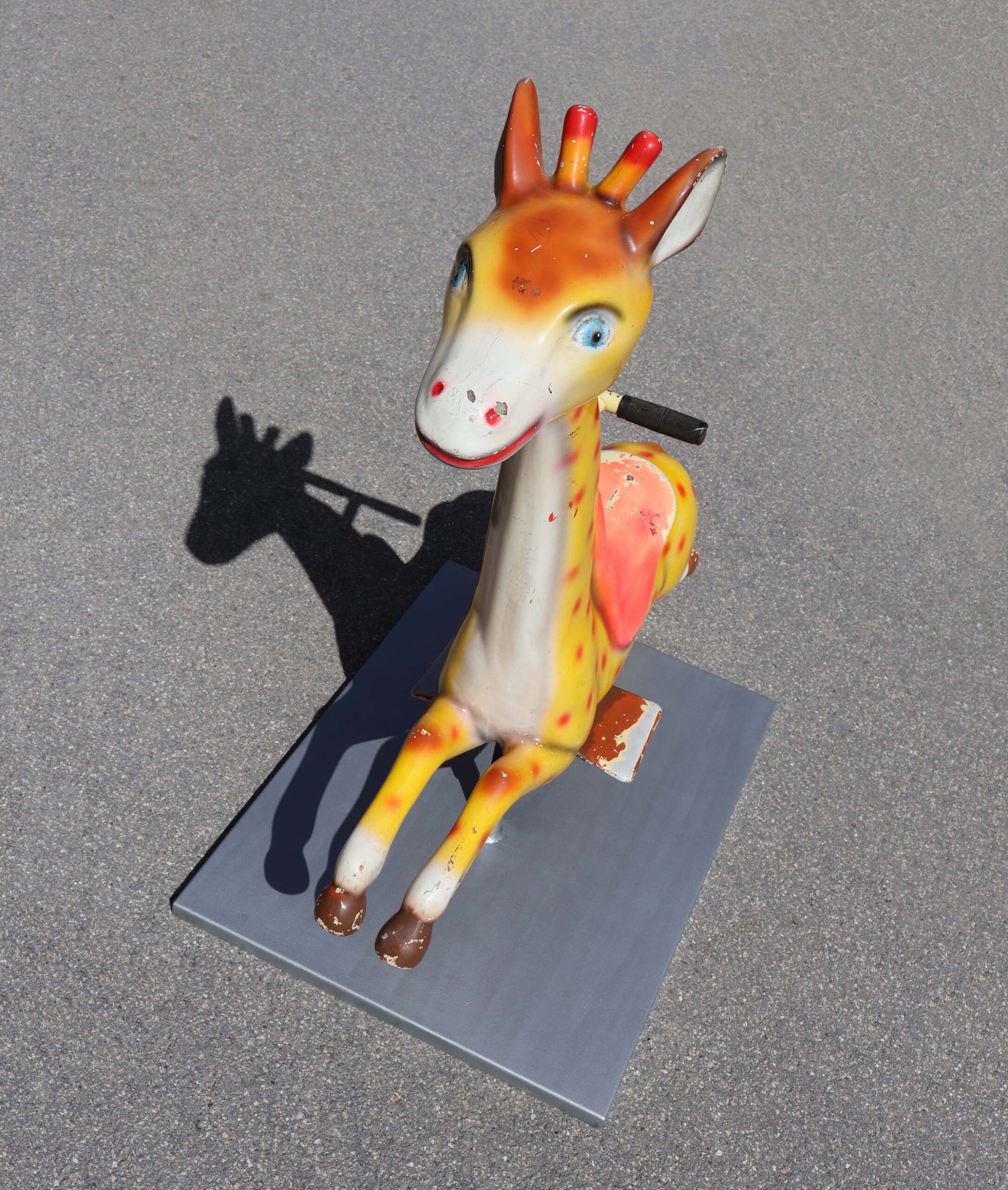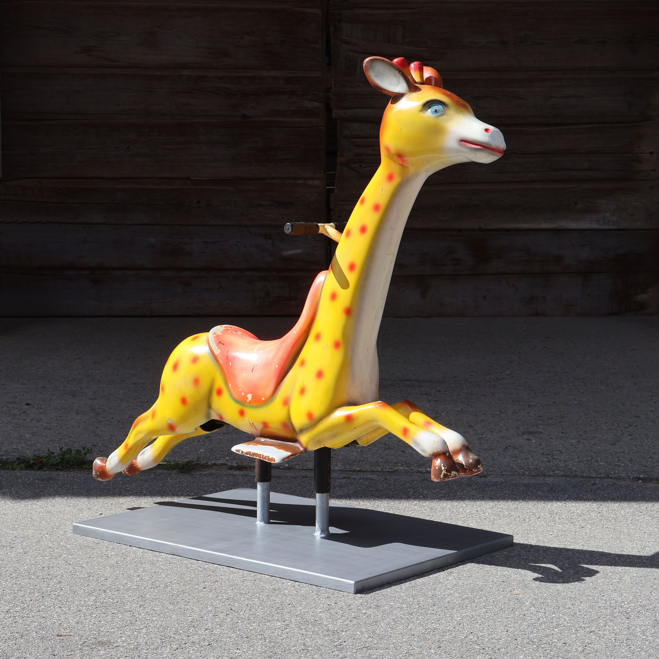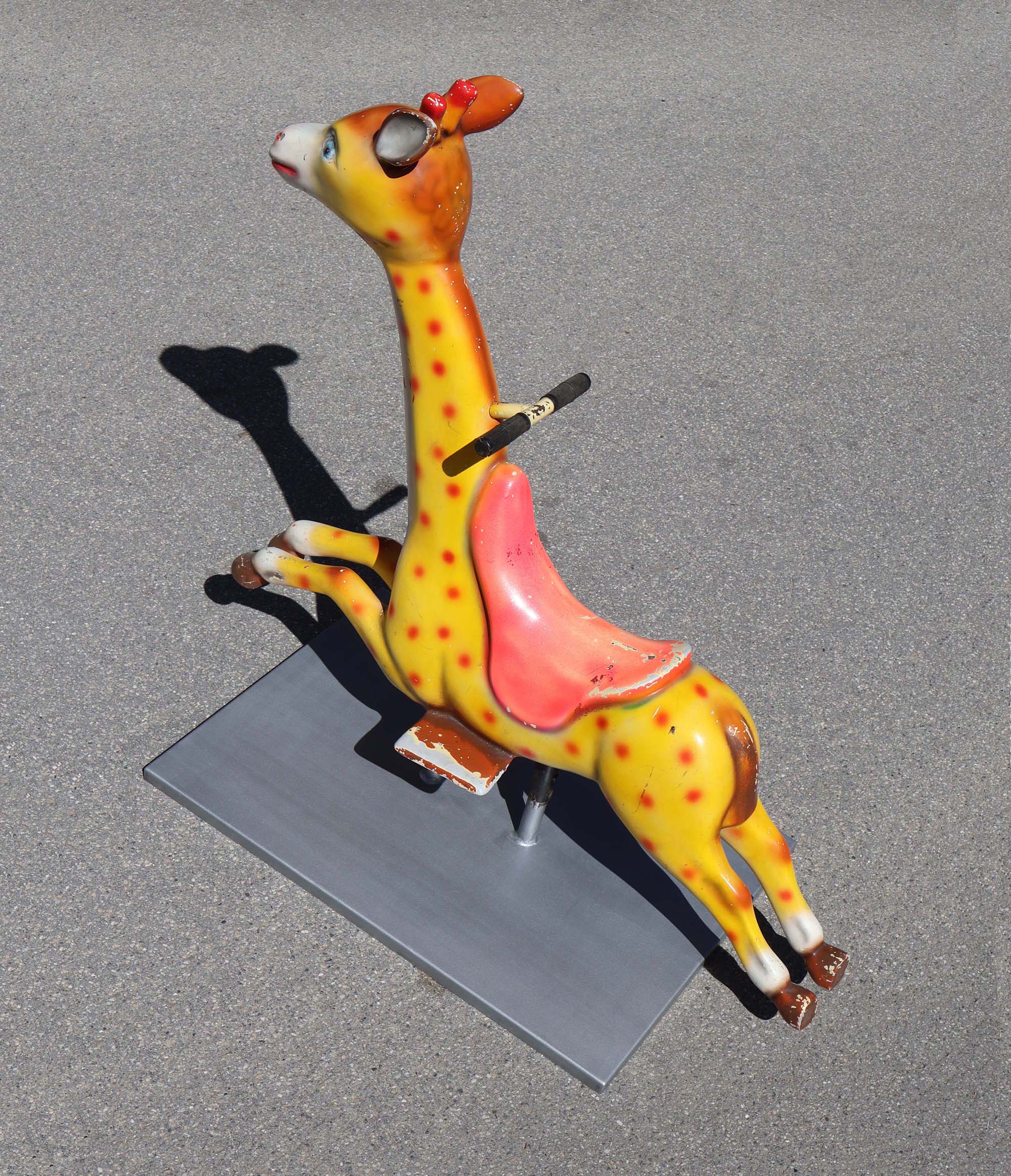 Girafe de manège kiddie ride : Sujet de manège vintage / animal de carrousel. C’est plus particulièrement ce que l’on appelle un “Kiddie ride”.