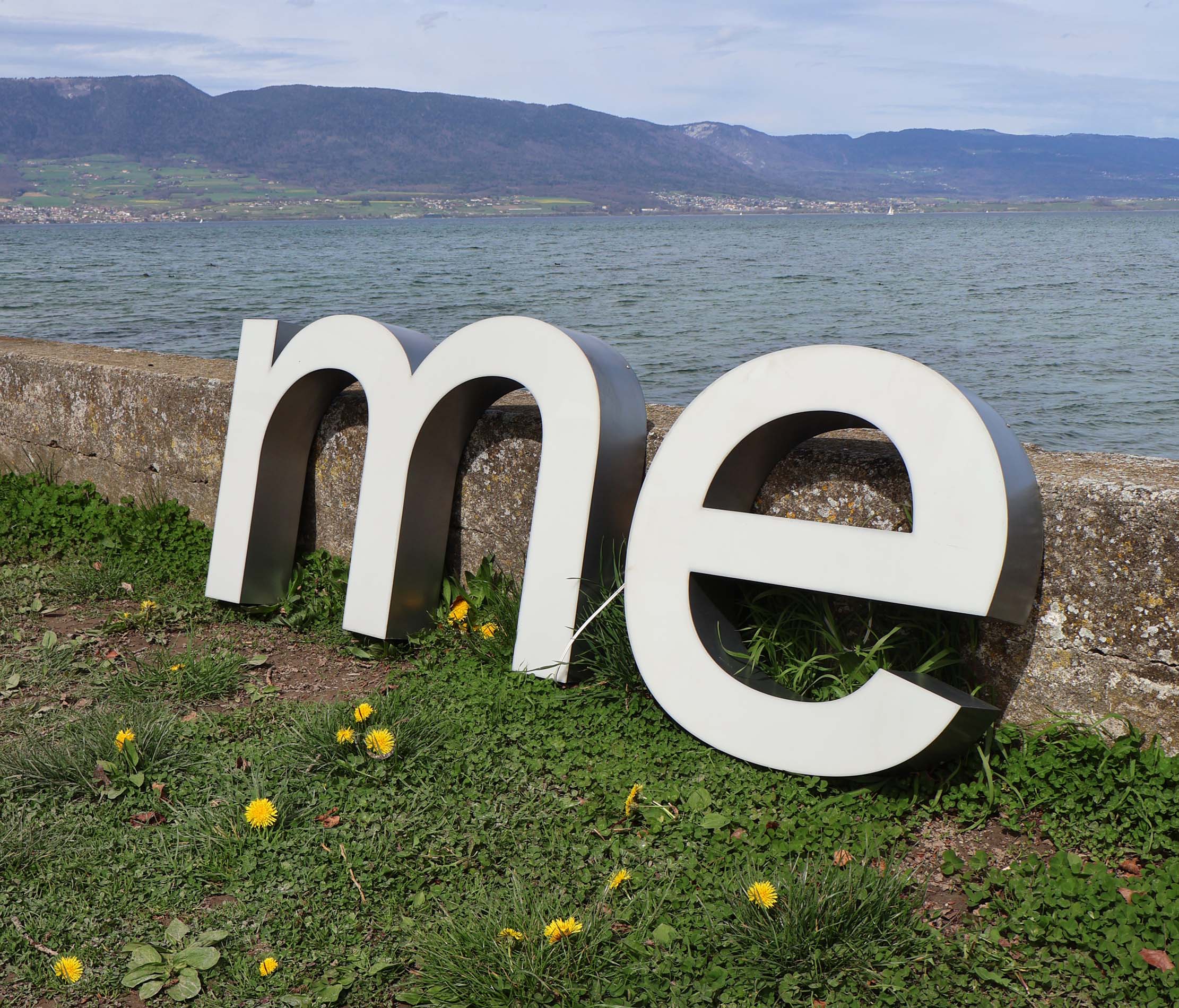 La typo ressemble à la fonte Helvetica. La lettre peut se poser par terre, ou alors en décoration murale. Et peut aussi faire office de luminaire d’ambiance.
