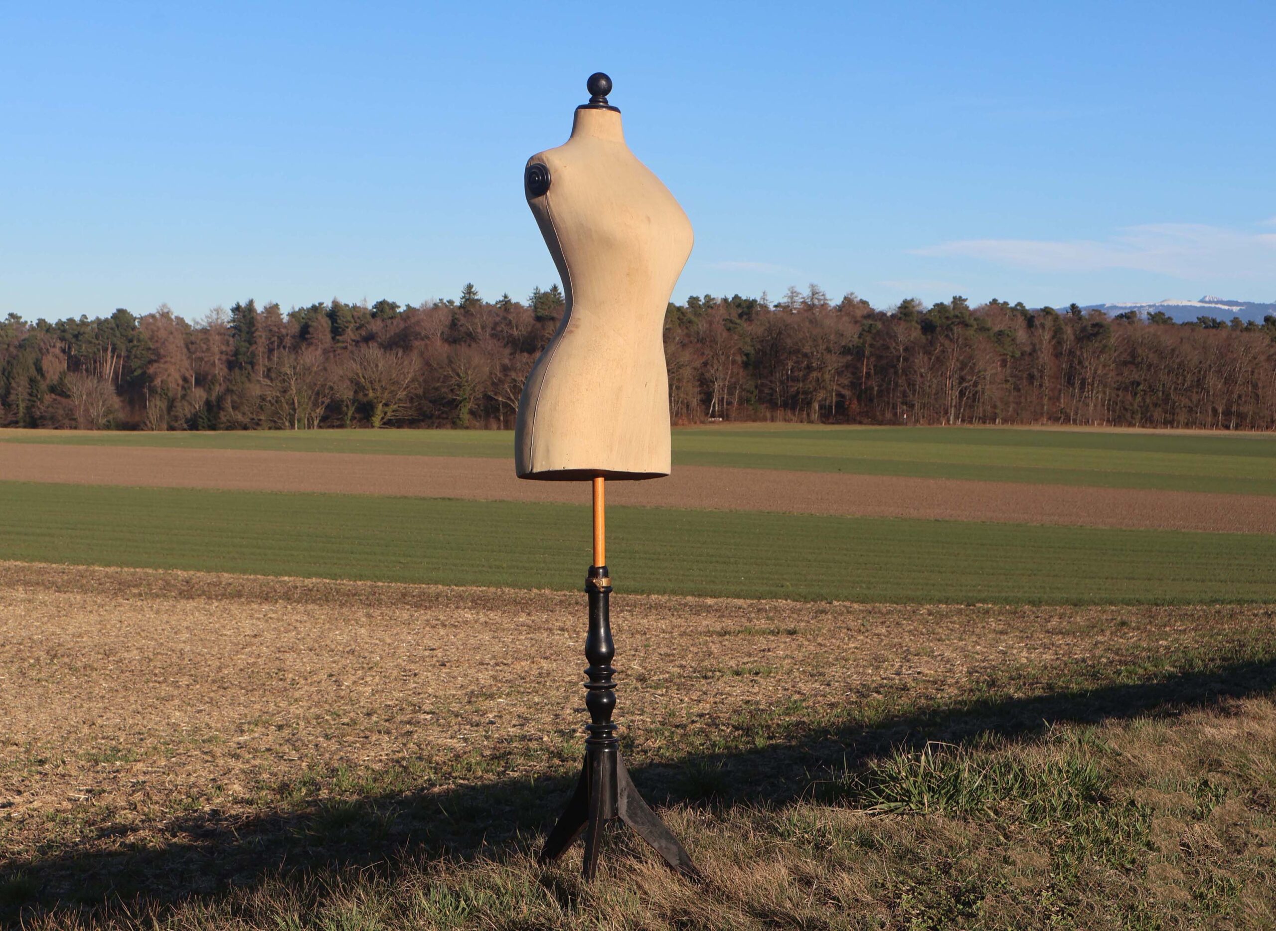 Mannequin couture Suisse 20s. C’est un ancien buste de couturière. Pour la confection de vêtements. Mannequin de couture féminin, de fabrication Suisse, des années 1920.