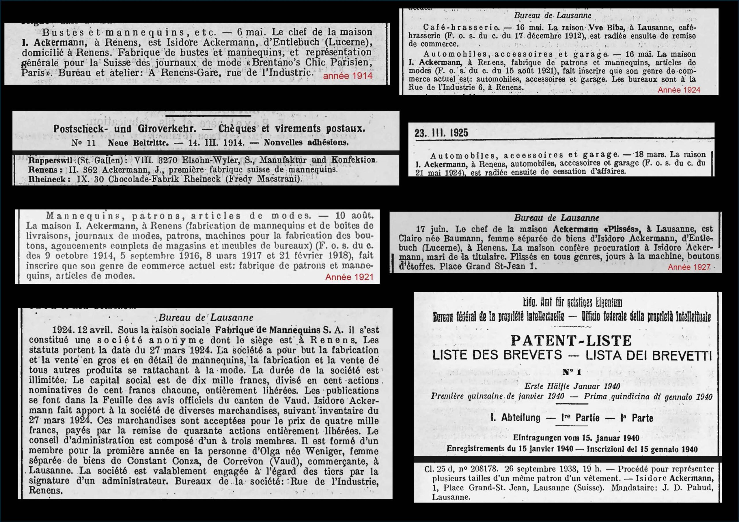 J’ai fait des recherches, et j’ai mis des extraits tirés de la “feuille des avis officiels”. L’on retrouve une première mention de ce fabricant, à partir de 1914. Le “chef de la maison” est Isidore Ackermann.