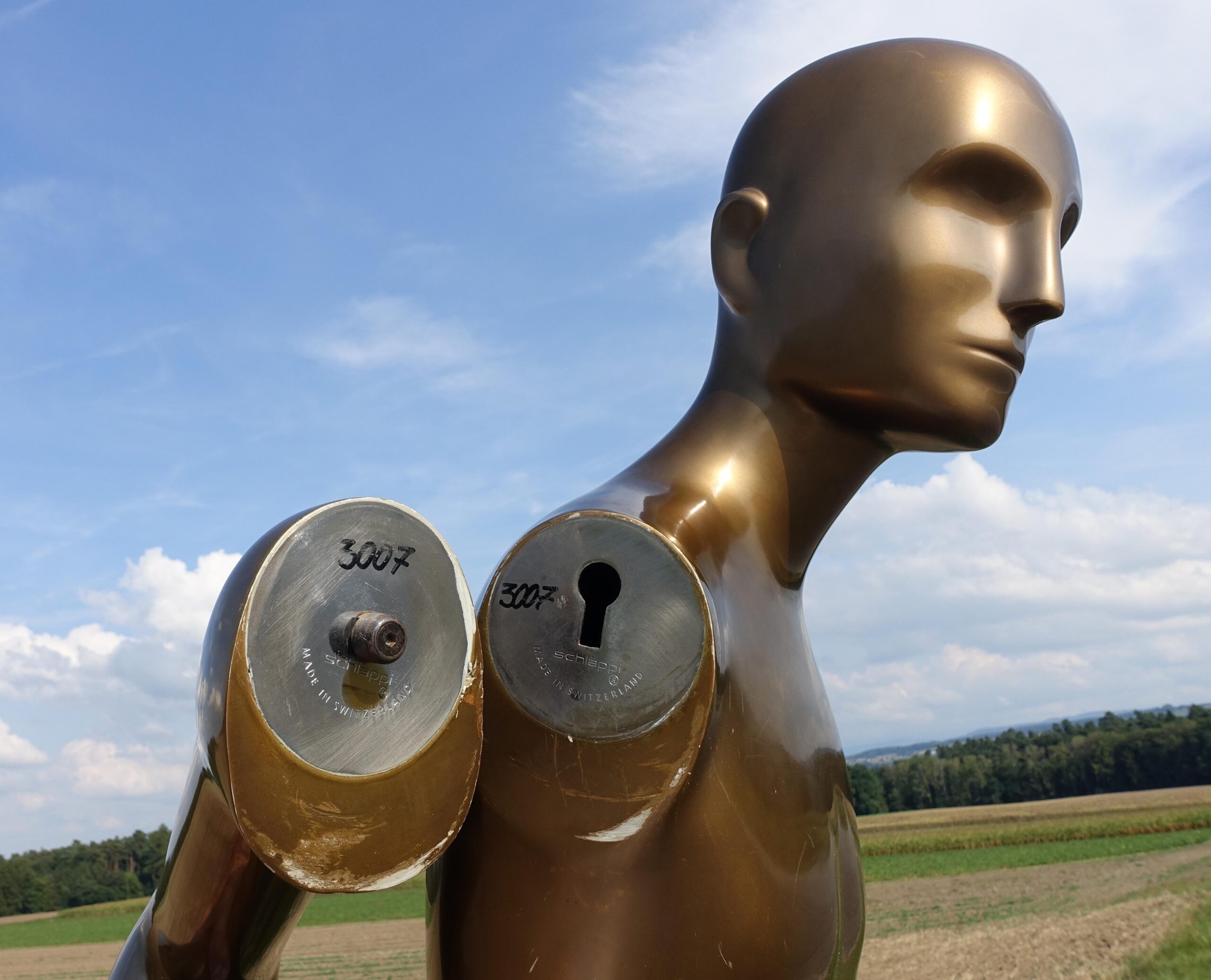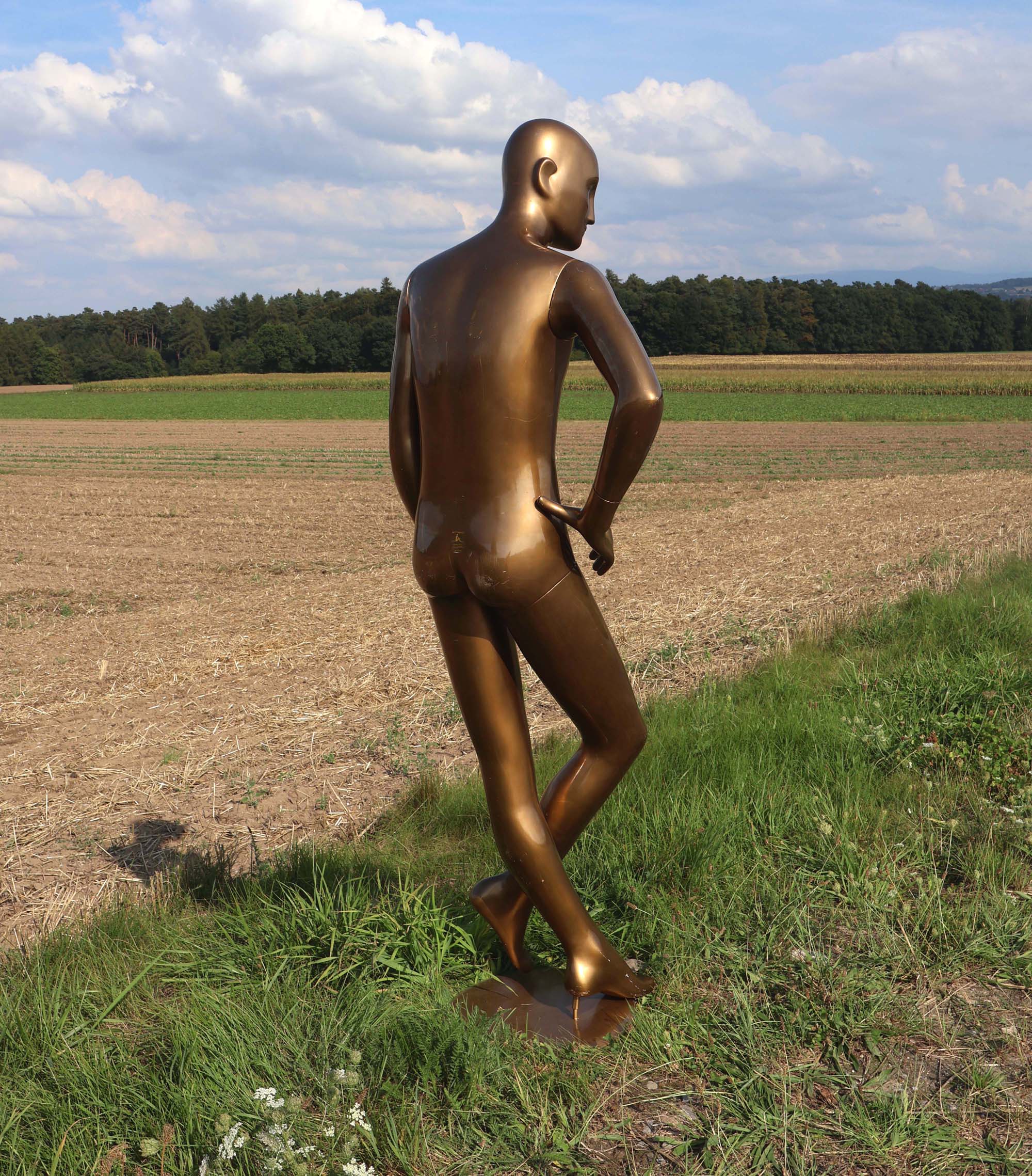 Mannequin homme Schläppi 70’s : C’est un mannequin de vitrine masculin, de la marque Suisse Schläppi. De la série 3000, avec une finition doré / bronze.