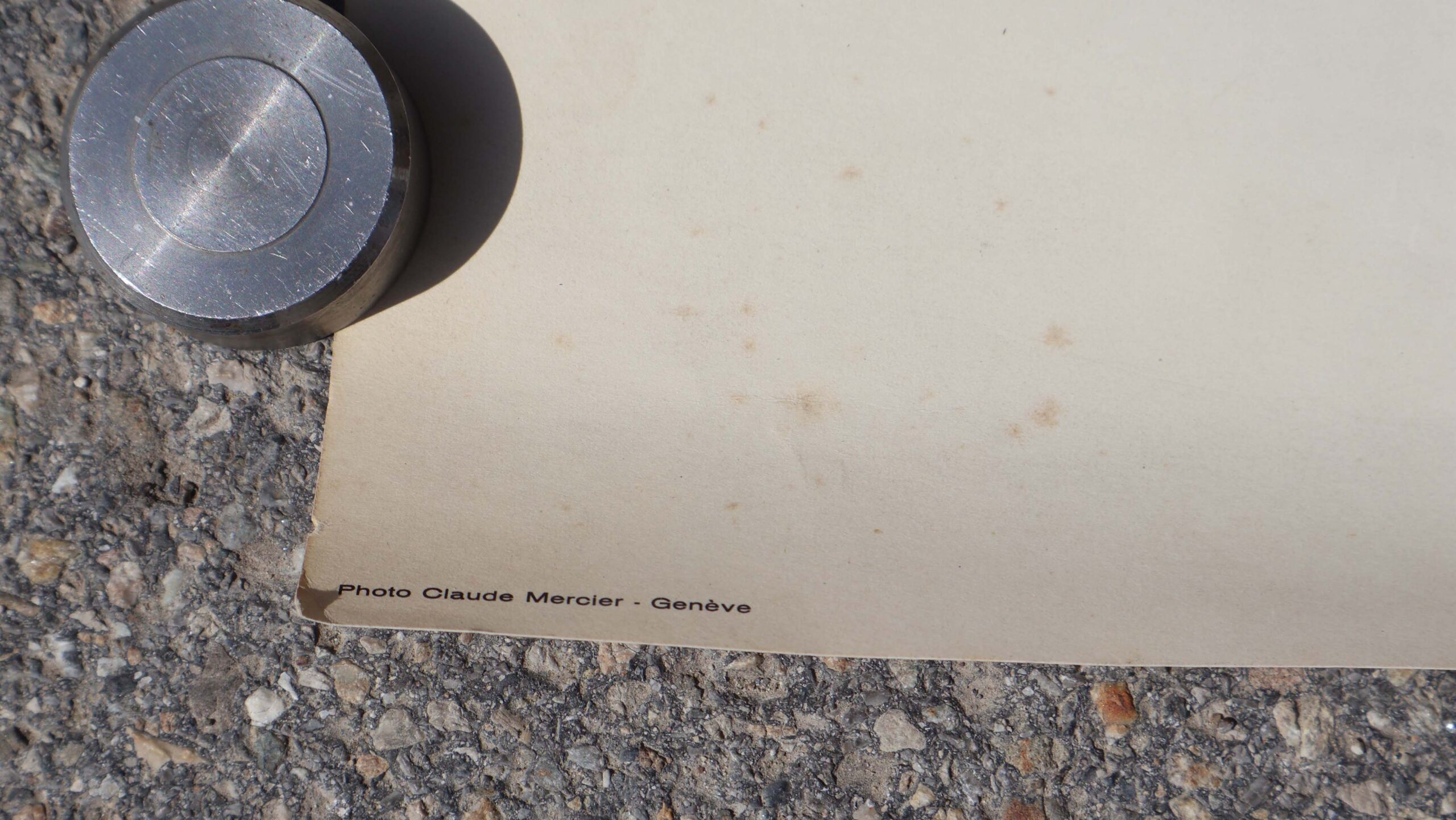 Imprimé en Suisse, par Offset Roto-Sadag S.A. Genève, photo Claude Mercier. Format 50x70cm, papier épais, finition mat satinée. Un peu jauni avec le temps, et tâches de rousseur.