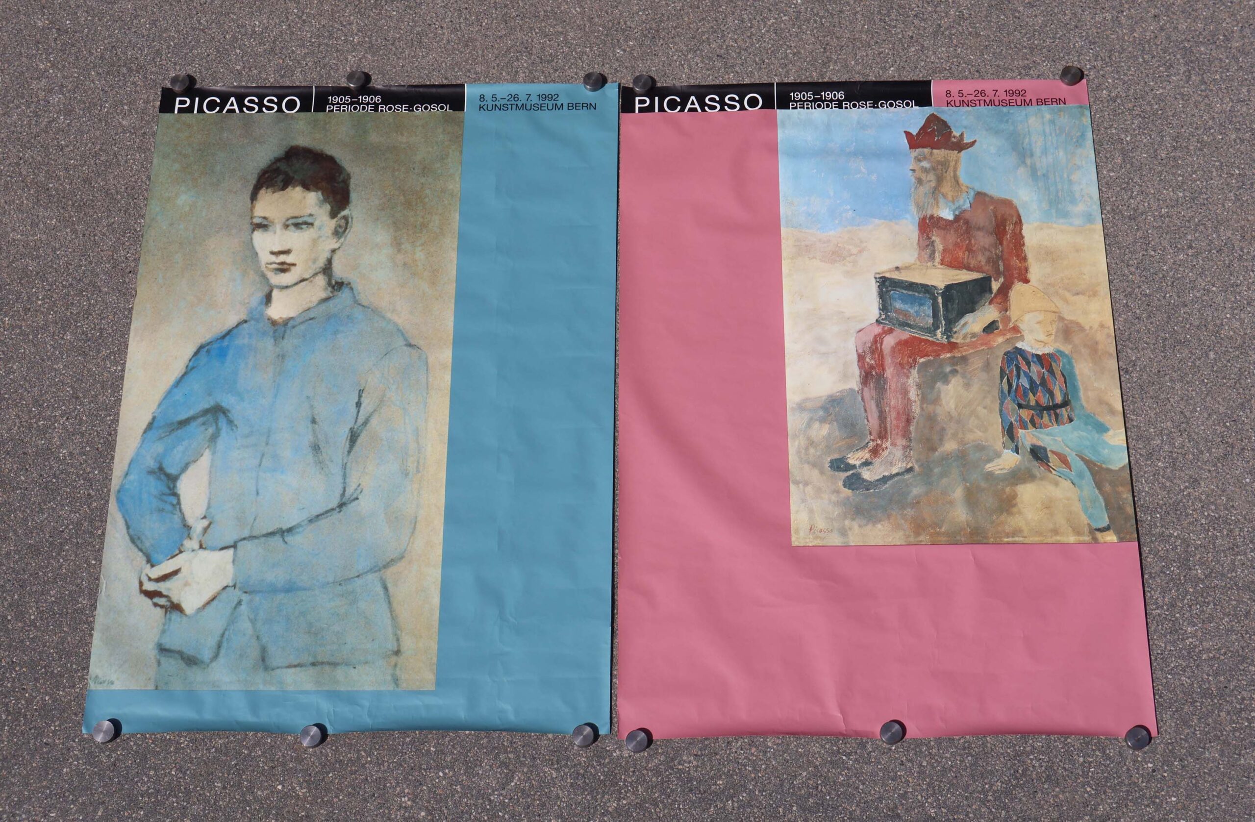 Affiches expo Picasso 1992. Lot de 2 affiches Suisses format mondial. Éditées par le Kunstmuseum de Bern. Pour l’exposition intitulée 1905-1906 période rose Gósol.