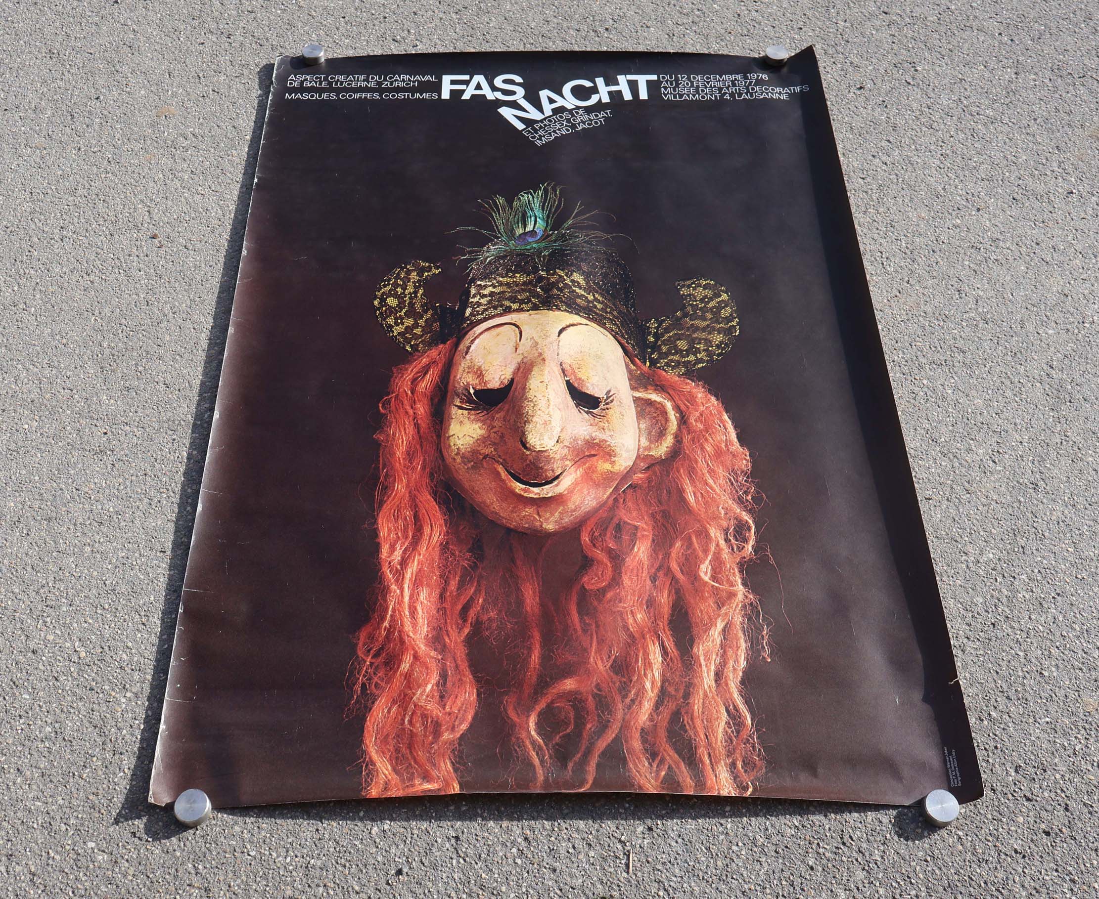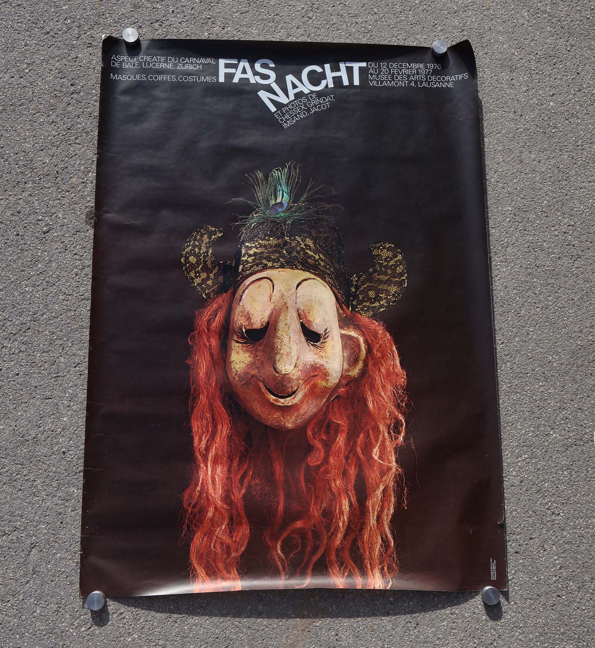 Carnaval expo musée 1976. Affiche éditée pour une exposition au musée des arts décoratifs de Lausanne, en 1976. Pour une exposition sur les masques de carnaval.